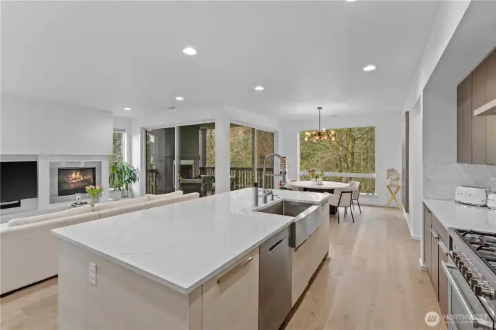 Updated and with an enviable greenbelt position in Kendall Ridge, this spacious home offers flexible living and peaceful forested privacy. The light-filled main level centers around a stunning designer kitchen featuring quartz countertops, stainless steel appliances, updated cabinetry, new flooring, and an oversized island perfect for gathering and entertaining. From your living room, step outside to a covered deck with a cozy gas fireplace overlooking the fully fenced backyard and serene greenbelt backdrop—an ideal space to relax or host year-round. With 4 bedrooms, 3 baths, and a generous bonus room, the layout offers excellent flexibility for today’s varying lifestyles. Two suite-style bedroom options—including a private lower-level suite with its own downstairs access—create ideal space for guests, multigenerational living, or extended stays. The main floor primary retreat features a spa-inspired 5-piece bath with jetted tub, walk-in shower, and oversized walk-in closet with built-in vanity. Additional home highlights include multiple gas fireplaces, custom blinds, California closet systems, and thoughtful updates throughout. Conveniently located near parks, shopping, dining, and commuter routes to Hwy 18, 167, and I-5. Comfort, versatility, and peaceful Northwest surroundings come together in this exceptional Kendall Ridge home.