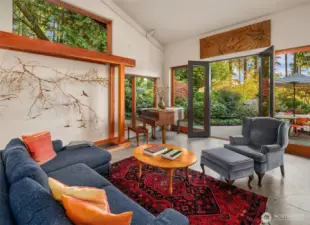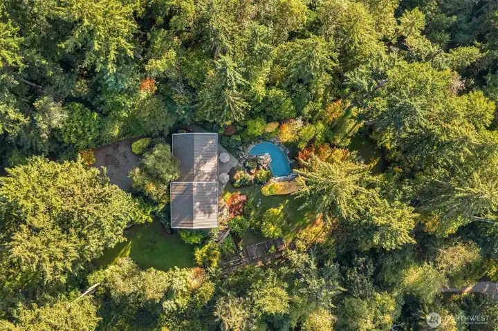A rare Vashon Island view estate with sweeping Sound views and a stunning panorama of the snow-capped Olympic Mountains. Set on 2 private, fully fenced acres, this Northwest contemporary offers exceptional privacy, curated landscaping, and a seamless connection to the outdoors. The grounds were expertly designed by renowned landscape designer Terry Welch and feature lush lawns, mature Japanese maples, sculpted evergreens, and beautifully layered gardens that create a serene, destination-worthy setting. At the center of the outdoor experience is a dramatic black rock-surrounded saltwater pool, also designed by Terry Welch, with expansive terraces ideal for outdoor dining, entertaining, and quiet evenings under the stars. Inside, vaulted ceilings, generous windows, and exceptional natural light frame the water and mountain views throughout the home. Warm, refined finish materials, including cedar, concrete, and handmade hardwoods, bring together modern craftsmanship and timeless Northwest design. The chef’s kitchen was created for serious cooking and inspired gathering, owned by a James Beard Award-winning chef, and opens to the home’s main living spaces for easy everyday living and entertaining. A 4-bedroom septic adds flexibility. First time on the market, this is an exceptionally private Vashon Island home with Olympic Mountain and Sound views, designer gardens, and a resort-like pool experience.