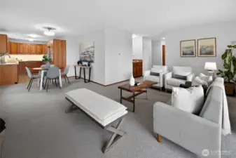 Experience stunning views of Elliott Bay and the Seattle skyline from this beautifully updated 2 bed, 1.75 bath condo. Enter into the inviting living room with ultra-quiet AC, a wood-burning FP, & your private view balcony. The stylish kitchen is equipped with SS appliances, Corian CTs, LVP flooring & tons of real Hickory storage cabinets. Newer Mohawk SmartStrand carpet throughout, enjoy the NW views from your living room, dining room, kitchen, or the private balcony! The spacious primary suite features a personal ¾ bath, walk-in closet, while the AC keeps you comfortable year-round. This attentive, self-managed HOA keeps things simple, while the low monthly dues of $340 covers your W/S/G, common area maint., semiannual tinted window & hallway carpet cleaning, EQ Insurance, & more! Perfectly located near the Water Taxi, Alki Beach, and West Seattle’s best restaurants, this is where Comfort meets Seattle’s most iconic views!