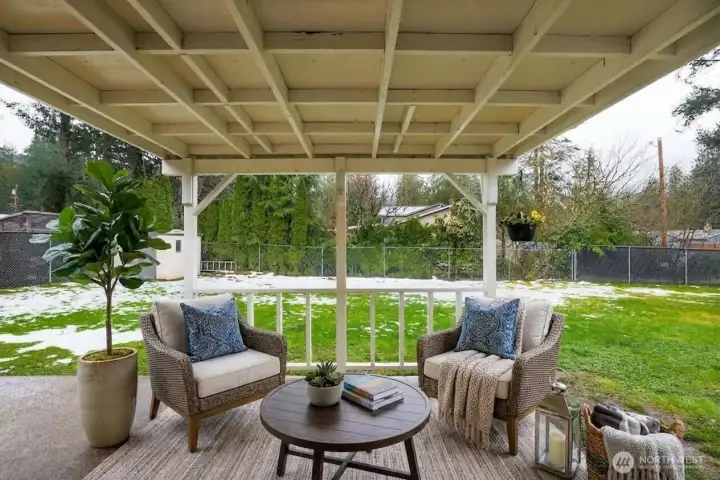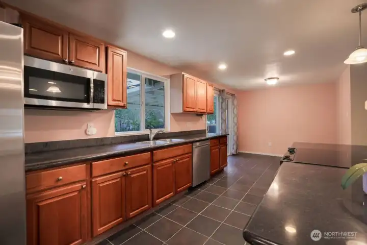 Welcome to this charming rambler on a desirable corner lot in North Bend! This spacious 3-bedroom home offers comfortable one-level living with a bright, open layout. The spacious kitchen features a large island, slab granite counters, stainless steel appliances, abundant cabinetry, and a cozy nook area, flowing seamlessly into the generous family room—perfect for everyday living and entertaining. The home also includes a convenient laundry area and three bedrooms. Enjoy the fully fenced backyard, ideal for pets, play, or relaxing evenings outdoors under your covered patio. Oversized 2 1/2-car garage provides ample parking and storage with the possibility of a second bath w/ heat plus RV parking. Recent updates include a brand-new roof with a transferable warranty for added peace of mind and wired for generator. Conveniently located just minutes from Interstate 90 with easy access to trails, lakes, and hiking, making it easy to enjoy the outdoor lifestyle the Snoqualmie Valley is known for.