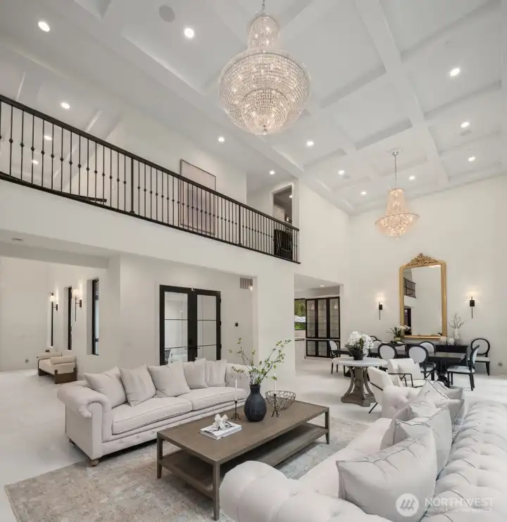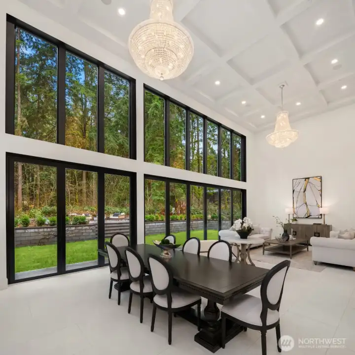 A custom built estate spanning 6,467 sqft across two buildings in a gated, deeply wooded and private 2.83 acre lot. Located in the renowned Lake WA School District, this sanctuary offers effortless access to tech commutes and elite dining. Thoughtfully designed to harmonize with its old-growth evergreen backdrop, a grand two-story foyer with dazzling chandelier leads to the great room where soaring coffered ceilings and a two-story wall of glass invite an abundance of natural light. The gourmet chef’s kitchen is a masterwork with Thermador appliances, double ovens, two dishwashers, and bespoke cabinetry. Designed for ultimate flexibility, this estate includes 3 bedrooms, a private mother-in-law studio with full kitchen, a separate office, and multiple bonus rooms. The primary wing serves as a retreat with a spa-inspired 5-point shower and boutique walk-in closet. A technological marvel, the home includes a comprehensive smart home system and dedicated server room. Beyond the main house, "The Lounge" is a world-class amenity building with a movie theater, gym, game room, office, playroom and workshop. Outdoor living is redefined by a resort-style pool, XL Jacuzzi, and private trails winding past two creeks with direct access to the adjacent Tuscany Equestrian trails. Enjoy fire pits, a fenced garden, greenhouse, and mature grapevines. Complete with 4 garage bays and over-sized boat parking, this estate combines architectural brilliance with a private wellness retreat.