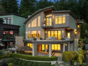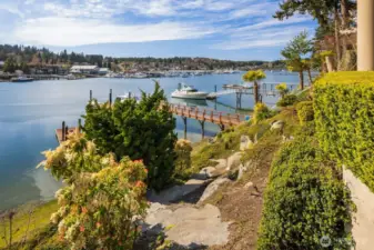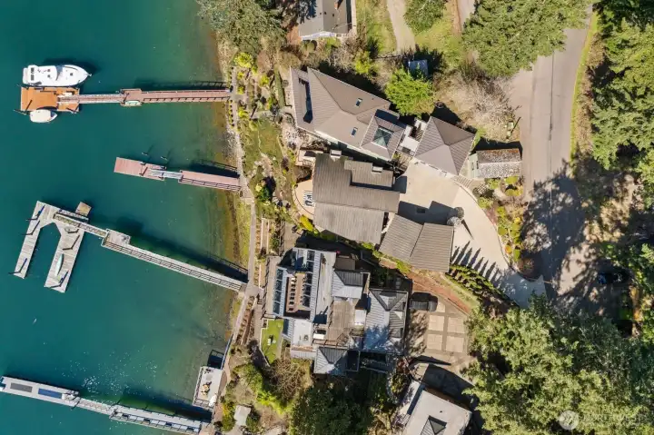This stunning NW Contemporary waterfront retreat, perfectly positioned along the coveted shores of Gig Harbor Bay. Blending timeless design with effortless luxury, this exceptional 4-bedroom residence offers 50ft of low-bank waterfront & an unparalleled connection to the vibrant maritime lifestyle just beyond your patio. Boating enthusiasts will appreciate not one, but two docks—a 44ft shared dock & a 34ft private dock—ideal for accommodating your yacht, sailboat, or weekend watercraft. Here, the harbor truly becomes an extension of your home, where morning coffee pairs with gentle waves & evenings are framed by glowing sunsets over the water. Inside, walls of windows capture sweeping 180-degree harbor views, filling every space w/ natural light & a sense of serenity. The main-level primary suite is a private sanctuary, featuring breathtaking views, a walk-in closet, and a beautifully remodeled bath complete with radiant heated floors, an elegant shower, & a freestanding soaking tub. Designed for both comfort and entertaining, the home continues to impress on the lower level with a generous family room anchored by a cozy gas fireplace, as well as a temperature-controlled wine room—perfect for collectors and don't miss the over sized garage. A stylishly updated ¾ bath adds convenience and flexibility for guests. This is more than a home—it’s a lifestyle. Experience the charm & beauty of waterfront living in the PNW. Selling fully furnished.