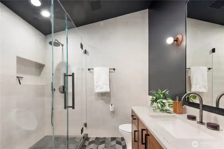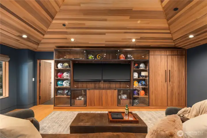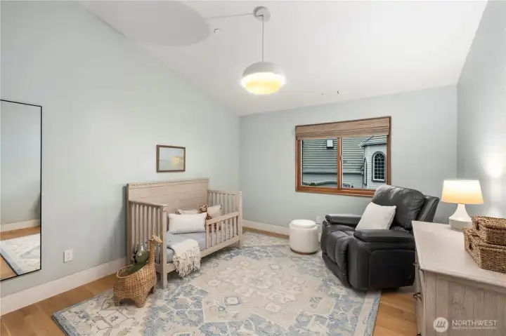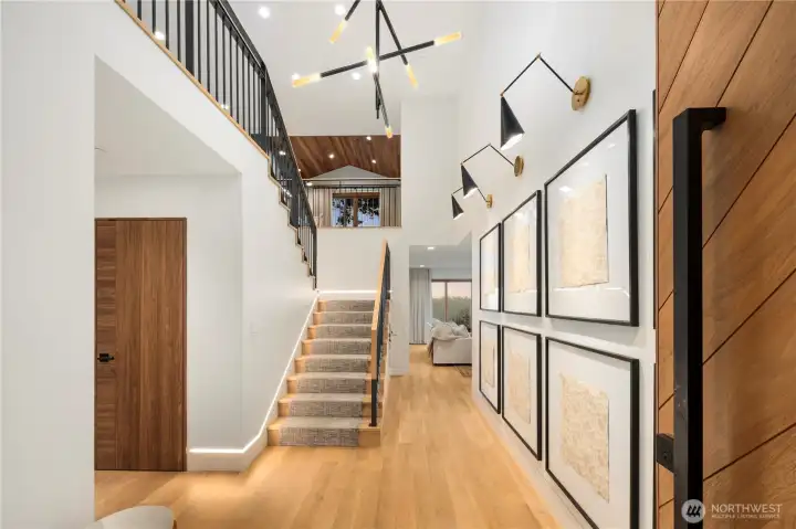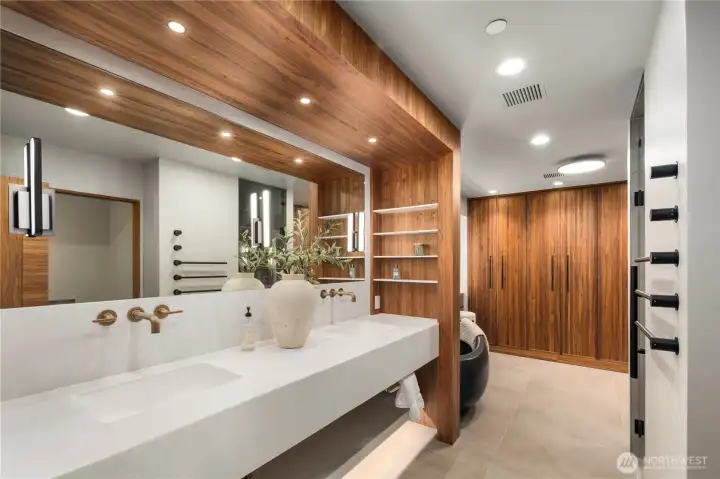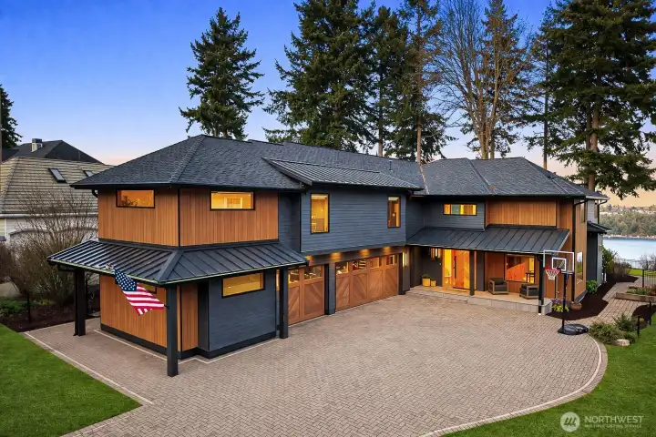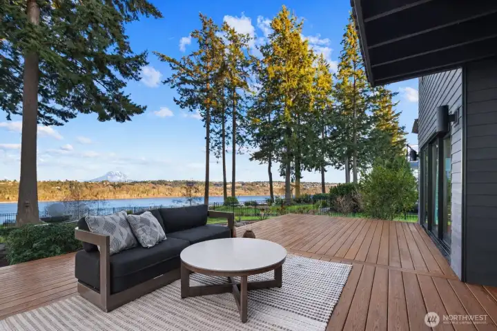 Rarely does a home of this caliber grace the Gig Harbor market. Perched on the bluff with sweeping views of Mount Rainier and the water—this home is a true modern masterpiece. Blending clean architectural lines with warm natural materials, it's both striking and inviting. No expense has been spared and no detail overlooked in the thoughtful design and craftsmanship throughout. Walnut-wrapped windows & doors, white oak hardwoods and cedar plank ceilings are just the beginning. The main level offers seamless spaces for living and entertaining—anchored by a stunning chef’s kitchen with premium appliances, expansive porcelain island, walk-in pantry, and designer lighting. Enjoy a tailored breakfast nook and dining area + wine room highlighting dramatic views and refined finishes. A main-level office showcases moody bespoke touches and custom cabinetry. Upstairs, the exquisite primary suite captures breathtaking views and features a spa-inspired bath, sophstone tub & impressive custom closet. Three additional bedrooms offer beautifully thoughtful storage & shared full bathroom. Best yet, a private retreat space with cedar-clad ceilings, bar area, and bath creates the ultimate lounge or media room—and a gym room just beyond. An additional upstairs office provides the perfect work-from-home setting. Custom expansive outdoor deck and a fully fenced yard complete this exceptional residence. Modern luxury, perfectly executed. None like it. This is elevated living at its finest.