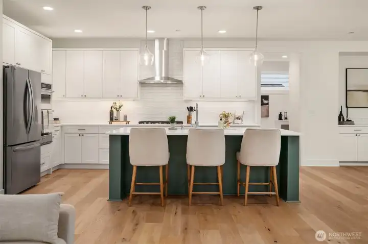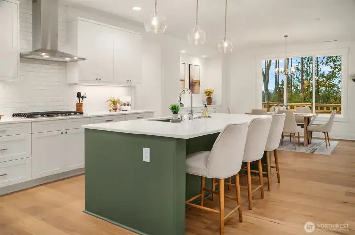 Select Homes’ new construction 5-bed is nestled in Edmonds’ Westgate. Welcoming open-concept design entertainer’s kitchen features Mistério quartz countertops, forest-green island w/ seating. Gas cooktop & all SS appliances. Butler’s pantry w/ sink & extra storage off garage entry for easy grocery unloading alongside built-in mudroom/desk area. Dining includes built-in buffet & territorial views. Shiplap detailing & gas fireplace add charm. Oversized windows & slider open to covered patio & fully fenced LG backyard. Guest Suite on main w/ barn doors. Wide-plank oak hardwoods throughout. Upstairs bonus room. Primary Suite w/ covered balcony, 5-pc bath, & WIC. Peekaboo Olympic views. Elevated craftsmanship throughout. 3-car tandem garage.