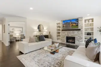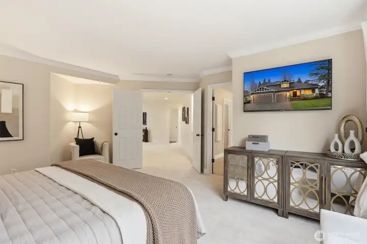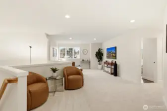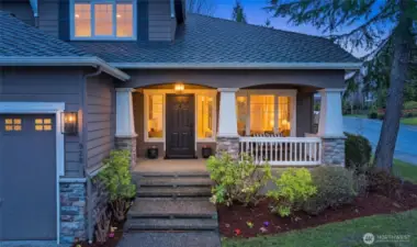 Set on a prime corner lot, this inviting home offers a rare blend of privacy, warmth, and an open layout designed for everyday living and entertaining. A welcoming front porch with a porch swing creates a charming first impression and the perfect place to relax and enjoy the neighborhood setting. Inside, gleaming hardwood floors and sophisticated lighting carry throughout the main level, complementing the home’s open floor plan. The tastefully updated kitchen flows seamlessly into the dining and living areas, creating a natural gathering space anchored by a striking stone fireplace in the family room. Thoughtful architectural details, including several art niches, add character and display space throughout the home. A main floor bedroom or office and a 3/4 bath, provide flexibility for guests, work-from-home needs, or hobbies. Upstairs, brand new carpet adds comfort and a fresh feel, while a spacious loft offers additional room for a media space, play area, or lounge. Outdoor living continues on the Trex deck, complete with a built-in barbecue, premium hot tub, and wood-burning fireplace, creating a year-round space for entertaining and relaxing. Additional highlights include irrigation in both front and back yards, a spacious storage shed, and a garage with built-in shelving. Enjoy the Trossachs lifestyle with neighborhood trails, tennis and sport courts, soccer field, exercise area and the natural beauty of Soaring Eagle Park just minutes away. Wow!