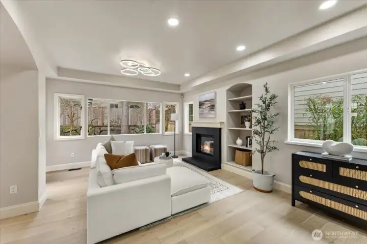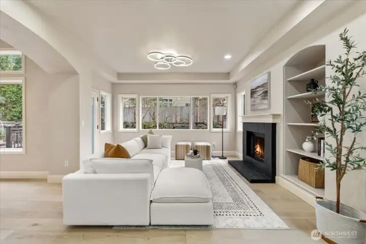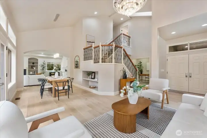 Beautifully renovated 4-bedroom home in the heart of Klahanie, a sought-after master-planned community on the Sammamish/Issaquah border known for miles of trails, parks, pools, sport courts, and everyday convenience. Gorgeous mature landscaping, soaring ceilings, and 2,280 SF of thoughtfully updated living space. The 2025 remodel features a brand-new kitchen, new carpet, and refreshed bathrooms. Upstairs offers 3 bedrooms, including a spacious primary en suite, plus a Jack-and-Jill bath connecting the secondary bedrooms. On the main level, the office functions perfectly as a 4th bedroom and is complemented by a rare full bath. Enjoy the expansive backyard with outstanding privacy, a huge 700 SF 3-car garage, and an extra-wide driveway with abundant parking.