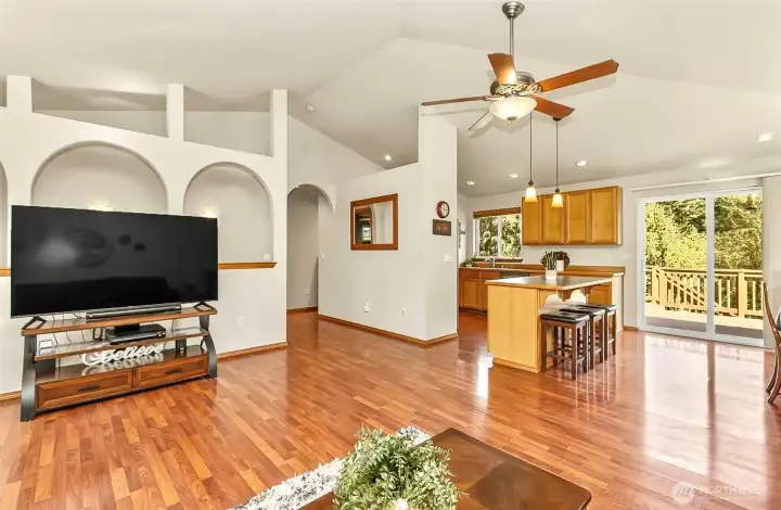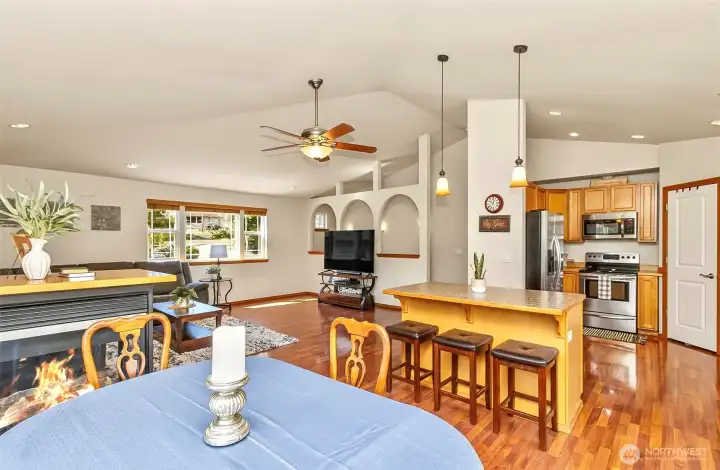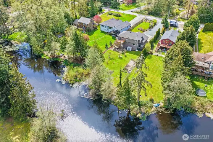 Introducing a rare opportunity to own a beautiful home on the shores of Lost Lake - Camano Island. This custom-built, one-owner home is on the market for the very first time & has been meticulously maintained throughout. 2-car garage with plenty of parking & room for RV storage on site. Set on an expansive 18,539 sq ft lot, this 2,116 sq ft residence offers a flexible & functional layout designed for both comfort & privacy. Enjoy fruit trees & raised garden beds, with fishing just steps away from your own private shoreline. The entry level features the first living room, full bath, generously sized laundry room, one bedroom, & a BONUS room —ideal for guests or multi-use living. Upstairs, features an oversized livingroom with gas fireplace & a half bath for convenience, a private primary suite showcasing a 5-piece bath, & walk-in closet. The kitchen offers a large island, a pantry, & additional dining space, with easy access to the stunning backyard. Experience peaceful lakefront living surrounded by nature—watch eagles soar overhead & cranes gather at the water’s edge. A spacious walk-in crawl space provides abundant storage. A truly special property offering serenity, space, and an unmatched setting. Enjoy the LLPOA community island (secured access only) featuring fishing, picnic areas, a dog park, along with community events. Ideally located near a state park, beaches, shopping, & a golf course.