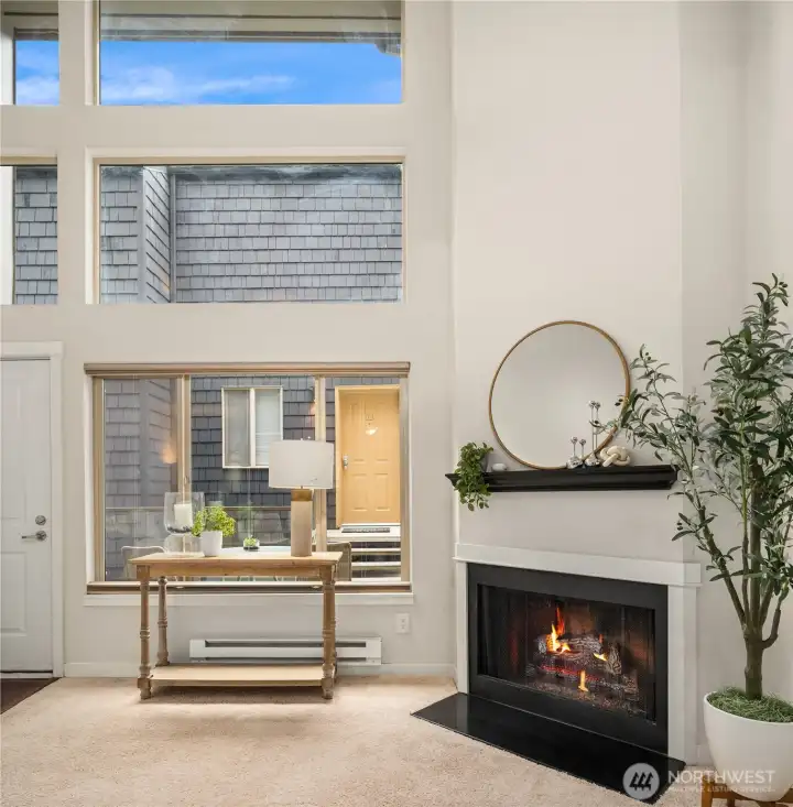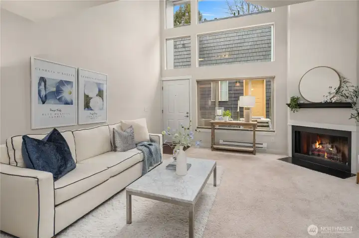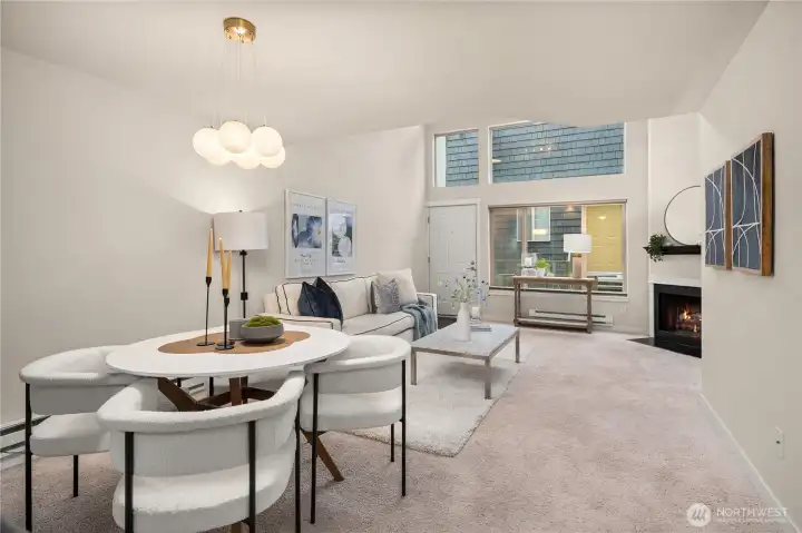 Experience the best of Sand Point living in this loft-style, top-floor condo just steps from Magnuson Park, the Burke-Gilman Trail and Sand point Country Club. This move-in-ready home features an open-concept layout with vaulted ceilings, abundant natural light, and a cozy fireplace, perfect for both relaxing and entertaining. The desirable two-level loft floor plan offers excellent separation of living and private spaces, along with generous storage. Enjoy a pet-friendly community with amenities including a gym. Well-managed HOA with no special assessments and NO RENTAL CAP. Ideally located near transit with quick access to UW, Seattle Children's Hospital, and major tech companies. A perfect blend of urban convenience and outdoor lifestyle.