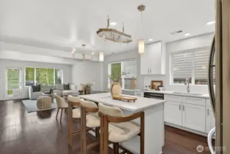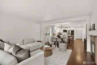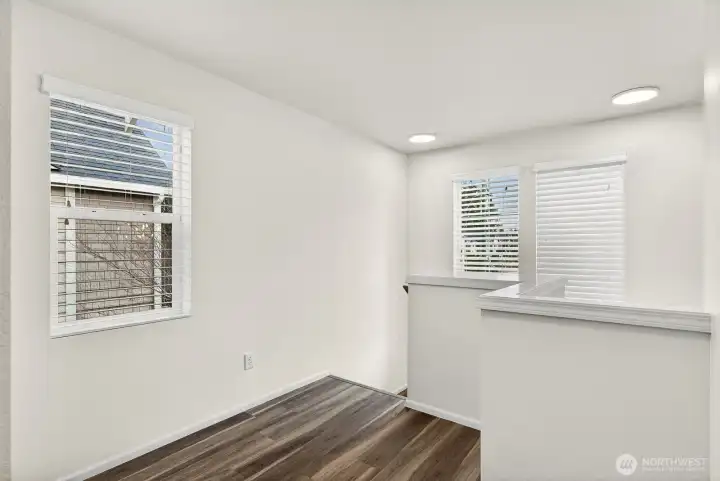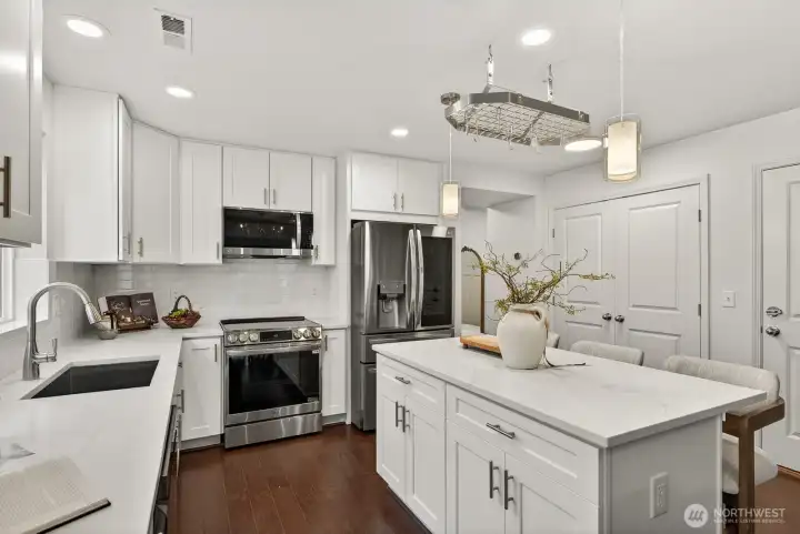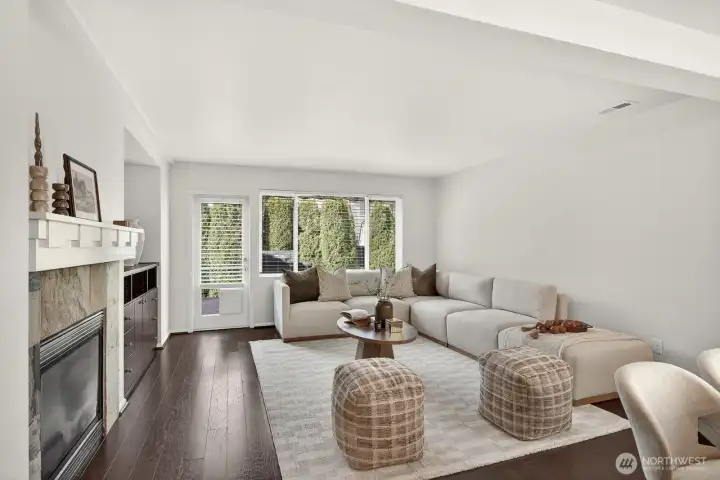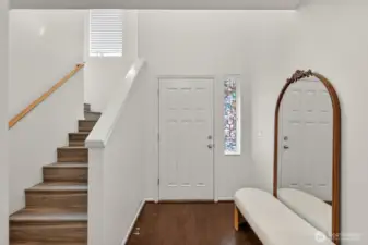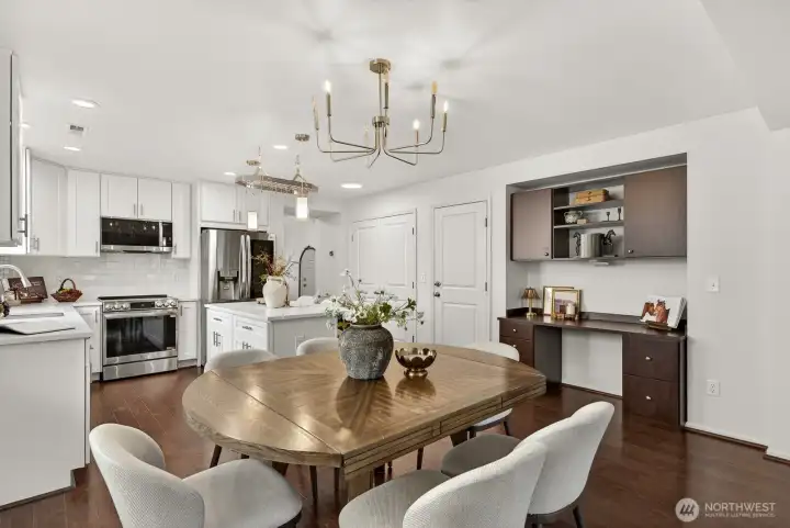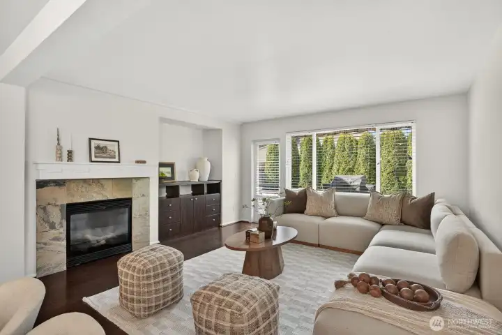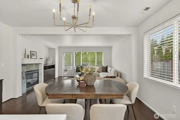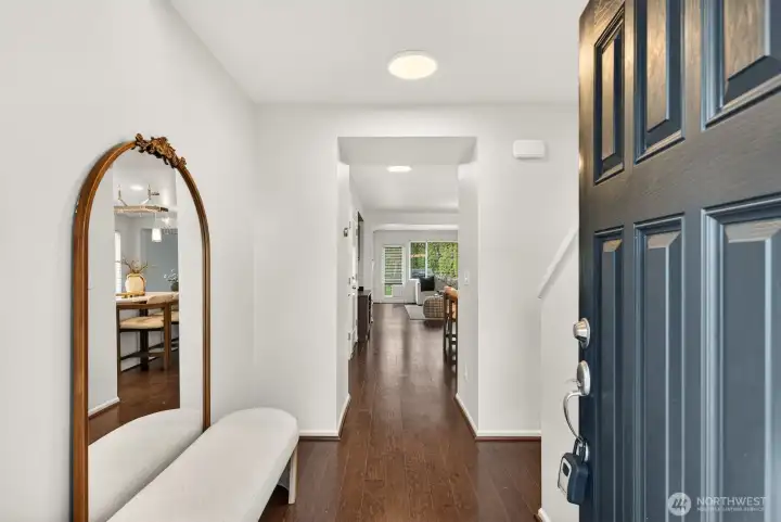 Updated CamWest two-story home in the Northpointe community of Mill Creek offering 1,718 sq ft, 3 bedrooms, and 2.25 bathrooms with a remodeled kitchen and smart-wired features. The open-concept layout provides abundant natural light and a functional floorplan designed for everyday living. The updated kitchen features stainless steel appliances, an upgraded induction-style oven, updated lighting, fresh interior paint, and newly painted exterior trim. The main living area includes engineered hardwood flooring and a gas fireplace. Upstairs, the primary suite offers a walk-in closet and ensuite bath, with durable LVP flooring throughout the upper level. The home is wired with ethernet and security connectivity and includes an On-Q Smart Panel supporting modern smart-home functionality. Enjoy a fully fenced, low-maintenance yard with a large patio built from long-lasting composite decking and an extendable awning, creating a comfortable space for outdoor dining or relaxing. A long two-car garage provides additional storage or workspace and includes an EV outlet for convenient home charging. Low HOA dues and convenient access to shopping, dining, bus lines, commuter routes, and Mill Creek Exploration Playground nearby.