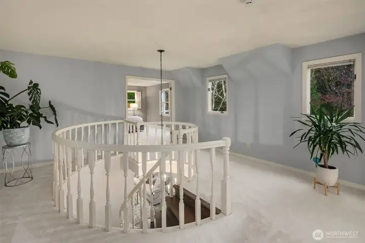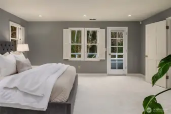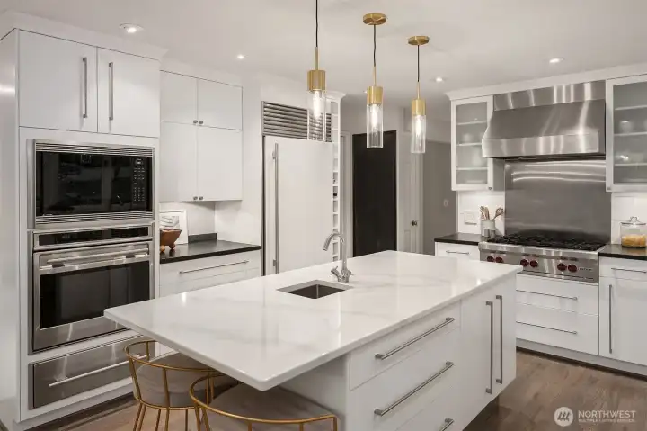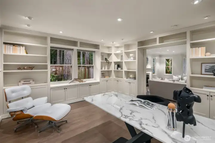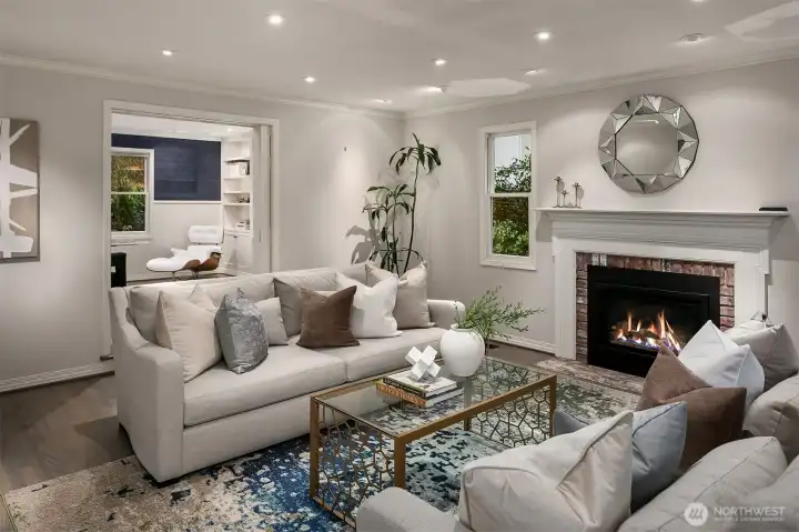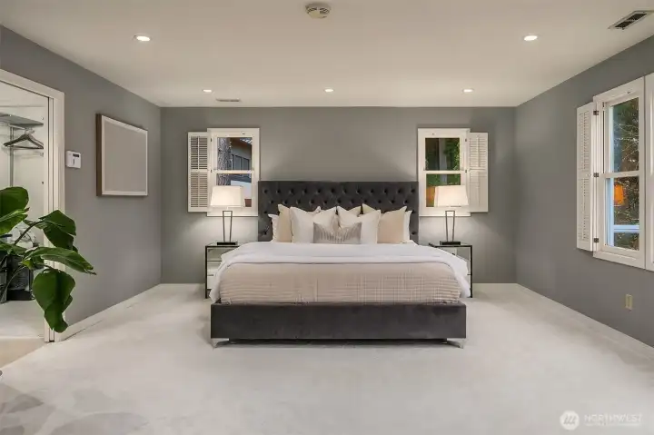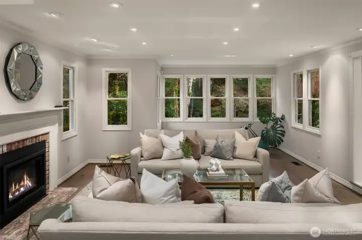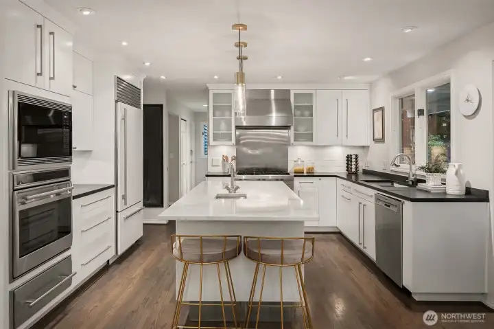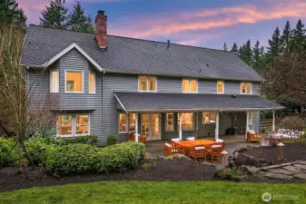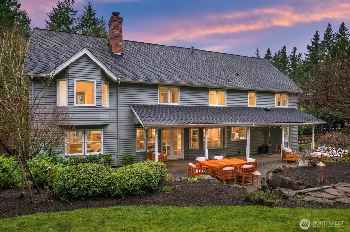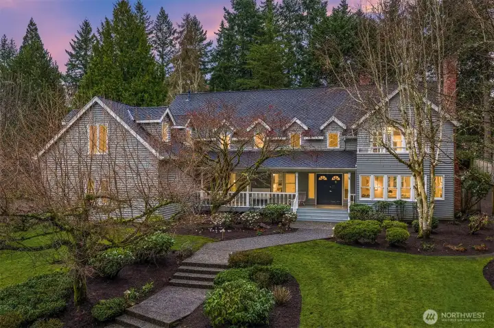 Set on quiet Homewood Lane, a small community of 5 Bridle Trails estates, this idyllic country style retreat offers a perfect balance of privacy & convenience. New marble floors in the entry & refinished oak hardwoods flow through a generous main level, including a formal living room with gas fireplace framed by nature filled windows, a wood burning fireplace in the dining room, a dedicated office with custom built ins, & a warm family lounge. The chef's kitchen features Sub-Zero & Wolf appliances, quartz counters, white cabinetry, & a walk in pantry. Upstairs, discover 5 beds, including a primary suite with a private deck, updated 5-piece bath with soaking tub, & dual walk in closets. Back staircase leads you to a massive bonus room - a perfect place for games and entertainment. The crown jewel of this property is the sprawling backyard that feels like your own private park, with mature fruit trees (pear, apple, & blueberries), lush landscaping, & a large covered patio, perfect for entertaining or soaking in the serene surroundings. Updated water heater & A/C with dual heat pumps, updated backup gas furnace, security, wired for generator, oversized 850sf garage with EV charging. Highly sought after Cherry Crest Elementary.