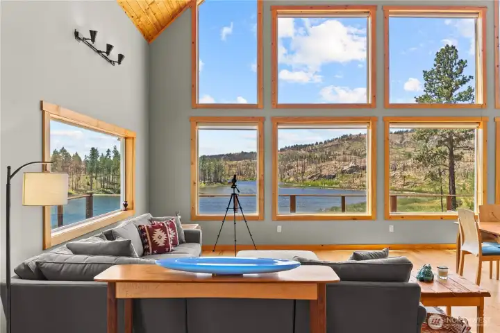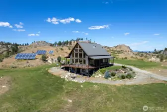 A once-in-a-lifetime Shalberg Lake waterfront opportunity! This exquisite off-grid lakefront retreat on over 60 acres features more than 1,200'+ of private shoreline, delivering endless beauty, fishing, boating, kayaking, and wildlife viewing in serene Okanogan County. Masterfully built in 2017, the 2,904 sq ft home boasts soaring vaulted ceilings, a dramatic wall of windows framing panoramic lake and mountain views, a modern kitchen with premium energy-efficient appliances, advanced solar panels for reliable sustainable living, and top-quality construction throughout. Enjoy ultimate privacy at the end of a peaceful road, yet easy access to Riverside and Omak amenities. A spacious insulated shop adds versatility for workshops, vehicles, or storage, making this self-sufficient sanctuary as functional as it is stunning. Your private lake escape awaits!