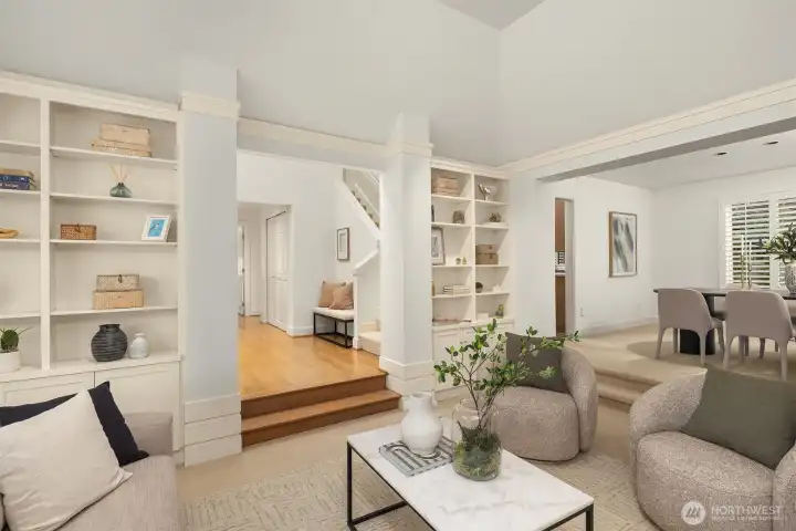 Welcome to Devonshire, a serene, gated community just minutes from downtown Bellevue. This beautifully maintained home offers the perfect blend of comfort, convenience, and timeless appeal. Inside, a bright and inviting floor plan features vaulted ceilings, expansive windows, and two cozy fireplaces that create warm, elegant living spaces. The main level flows effortlessly from the living and dining areas to the well-appointed kitchen, ideal for both everyday living and entertaining. A dedicated office on the main floor provides flexibility for working from home or hosting guests, while the laundry room adds everyday convenience. Upstairs, the spacious primary suite offers a peaceful retreat with a walk-in closet and ensuite bath with dual vanities. A second generously sized bedroom with a full bath completes the upper level. Enjoy your own private patio framed by lush landscaping, perfect for quiet mornings or outdoor dining. A generous two-car attached garage adds to the home’s functionality. All this in a secure, beautifully maintained community close to Bellevue’s premier shopping, dining, parks, and acclaimed schools.