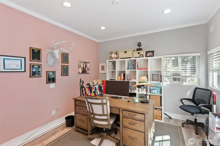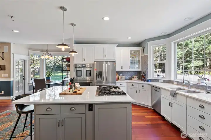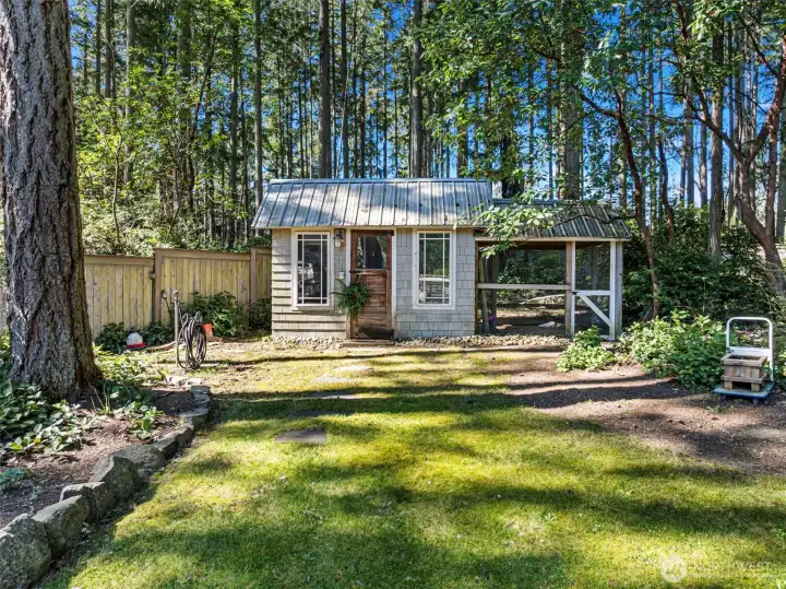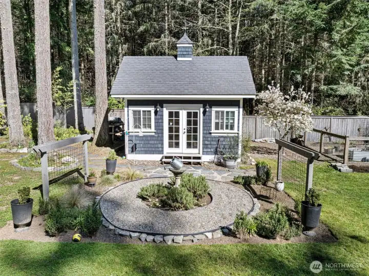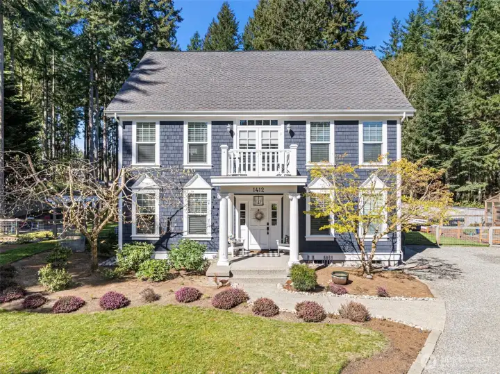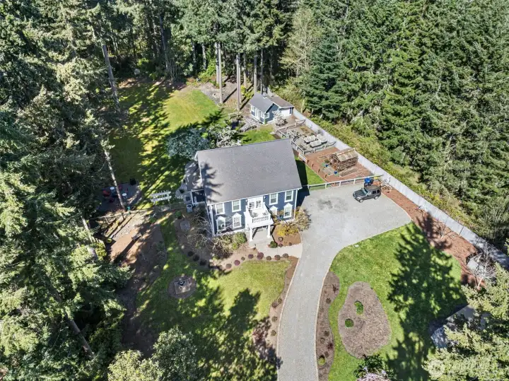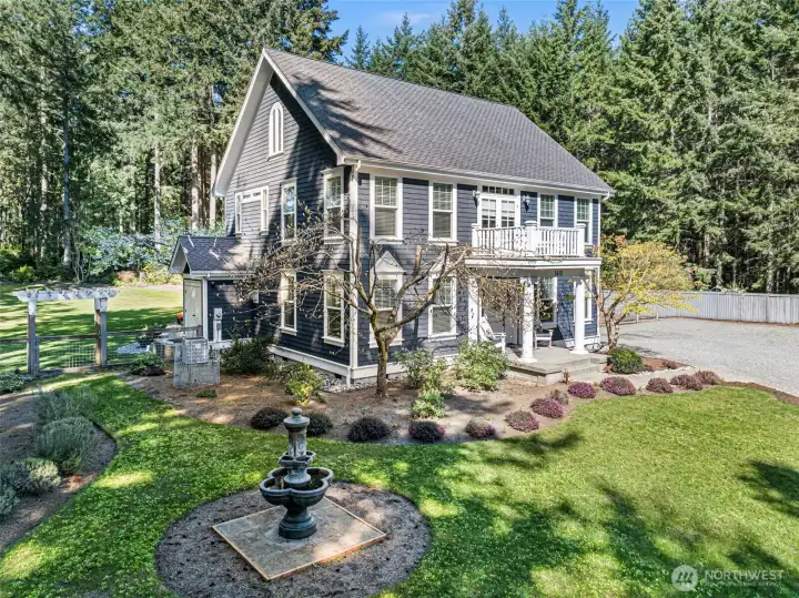 Charming farmhouse set on a peaceful, private acre where thoughtful design meets everyday comfort. This custom-built home welcomes you with extensive millwork, French doors, and warm built-ins. The main level features inviting living spaces. Upstairs you’ll find the primary suite with updated bathroom and walk-in closets. A lovely balcony deck. There are 2 generous bedrooms, while the top floor offers a flexible space for art studio, or oversized bonus room filled with natural light. The expansive laundry/mud room is both practical and delightful, complete with a coffee bar for slow mornings and seamless organization. A detached office with shop provides ideal workspace and extra storage for hobbies, tools, or gardening. Step outside to a backyard designed for connection and relaxation—gather around the dedicated firepit on flagstone pavers under bistro lights, barbecue beneath picturesque shade trees, and enjoy incredible sun exposure for raised garden beds and a charming chicken coop. RV parking adds flexibility, while dry-bed drainage and a gentle fountain enhance both function and ambiance. The home is served by a 5-BR septic, offering potential to add a garage with finished space above. Recent updates include a newer furnace and heat pump providing efficient heating and cooling year-round, plus an updated kitchen featuring Bluestar appliances with dual ovens, cooktop, and dishwasher. A rare blend of privacy, flexibility, and modern comfort.