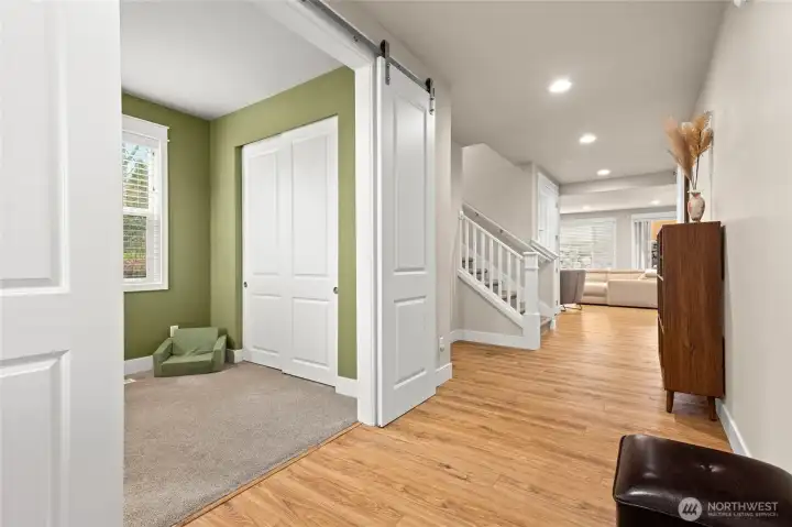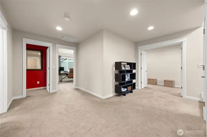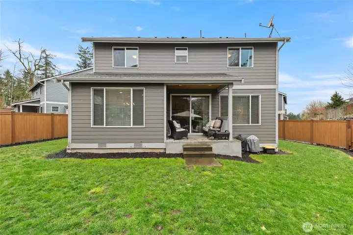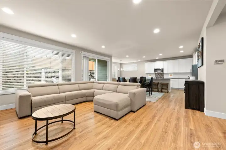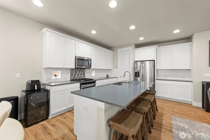 Welcome to a home that truly has it all! This open concept beauty is packed with builder upgrades and designed for comfortable everyday living. The stunning kitchen features quartz countertops and flows effortlessly into the dining and living areas. Retreat to the expansive primary suite featuring two walk-in closets w/ custom closet organizers and a spa-like oversized soaking tub. 4 bedrooms plus and office with a closet and a private backyard. The 3rd floor bonus living area offers incredible flexibility for a media room, playroom or guest retreat. A/C and front sprinkler system added. Home feels even bigger in person! Come see it today!