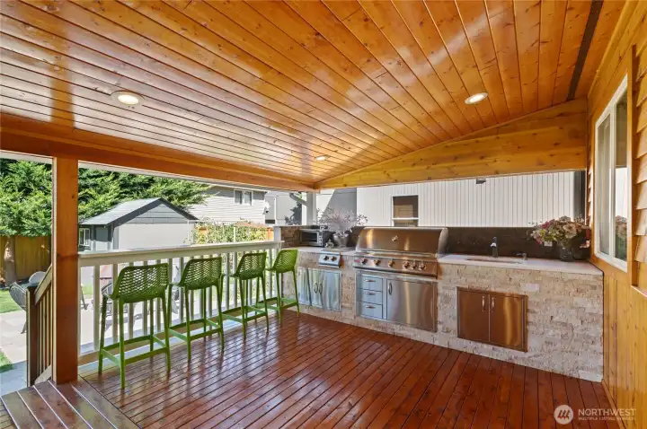 A Truly Unique beautifully updated home located on a quiet dead-end street! This stunning property features a remodeled kitchen with high end appliances and elegant marble and stone finishes, and comes fully furnished with high end furniture, making it truly move in ready. Custom closets throughout provide exceptional storage and organization. Enjoy the convenience of an in wall central vacuum system and the comfort of heated floors in the spacious master bathroom, complete with a relaxing Jacuzzi tub. The home also features multiple fireplaces and exceptional outdoor living spaces including a luxury outdoor Deck, extra large back patio, and a fully equipped Outdoor Kitchen perfect for entertaining. The yard is maintained with a sprinkler system, and the property offers ample parking including RV or boat parking on the side of the home, creating a rare combination of comfort, style, and outdoor entertainment in a peaceful location.