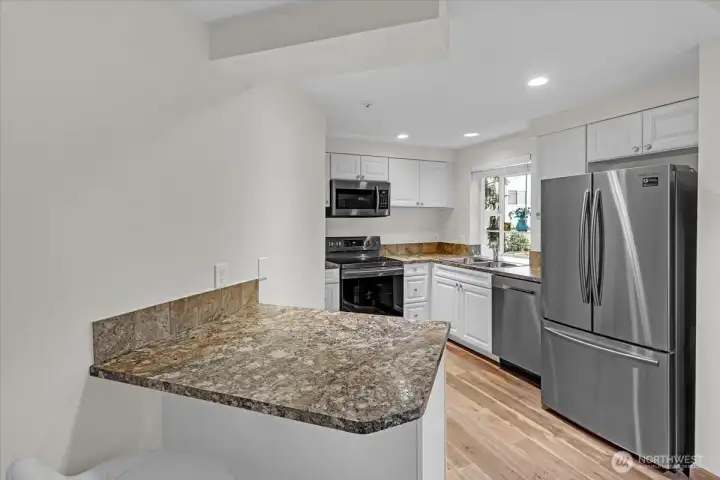 Rare opportunity for a condo featuring 3 beds, 2 baths, a garage, and 1 uncovered parking space. Welcome to this spacious 1,084 sq ft condo, where the vibrant energy of Redmond meets a uniquely tranquil setting. Tucked away from the main road, this home offers a peaceful sanctuary with soaring vaulted ceilings that create an airy, light-filled atmosphere. Whether you're in search of a serene getaway or a place close to the city’s best amenities, this condo strikes the perfect balance between comfort and convenience. Fresh carpet, brand-new dishwasher, upgraded lighting. No Rental Cap! Located in the esteemed Lake Washington School District, it's 5 minutes from downtown Redmond and Microsoft.