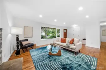 Fully Renovated 2026 Rambler in Sought-After Kingsgate – Every Detail Brand-New & Steps to Community Pool. Experience effortless luxury in this exceptional single-level rambler in highly desirable Kingsgate. Completely renovated in 2026 featuring premium finishes throughout: a stunning chef's kitchen with quartz counters, custom cabinetry, high-end stainless appliances, tile finishes, to beautifully refinished hardwood floors tying bright, open-concept living spaces flooded with natural light. The living room is anchored by a cozy fireplace and flows seamlessly through the kitchen and family room. The primary suite connects directly to a luxurious primary bath featuring a walk-in tile shower and quartz vanity. A full-size dedicated laundry, utility, and mud room flows to the attached 2-car garage with brand-new doors and finished, insulated interior and painted floors. Exterior upgrades: new 30-year composite roof, windows, and fresh paint, along with a brand-new driveway/walkway. The large patio off the kitchen—perfect for summer BBQs and entertaining and has gated access directly to the park and pool. Ideally situated, enjoy walking to the top-rated neighborhood elementary (Lake Washington SD), while being moments from downtown Kirkland's vibrant waterfront, parks, trails, Totem Lake Village shopping, dining, Evergreen Health, and Eastside commutes. This a rare and uniquely renovated rambler. A must see!