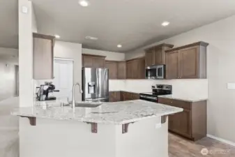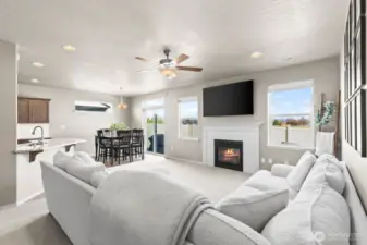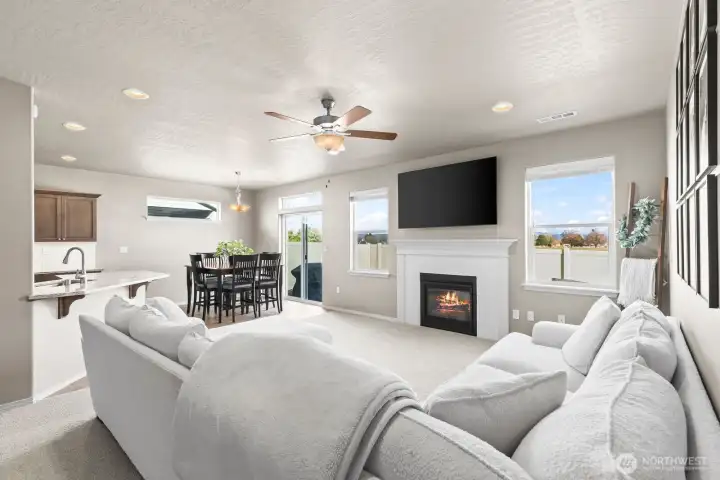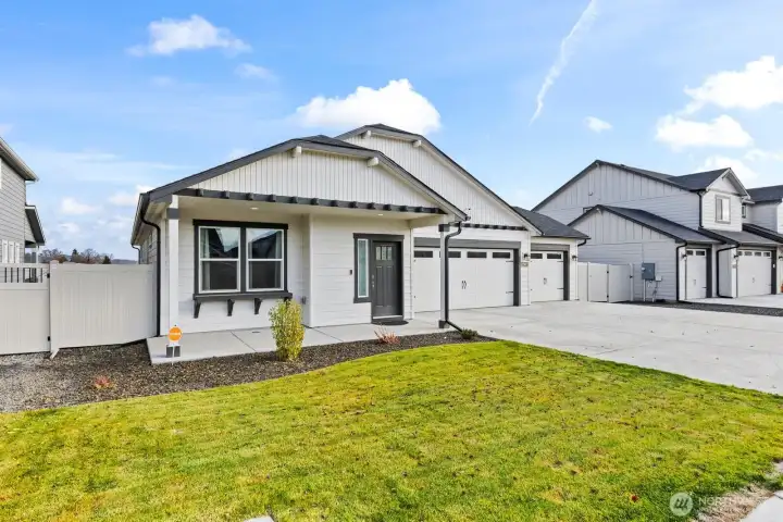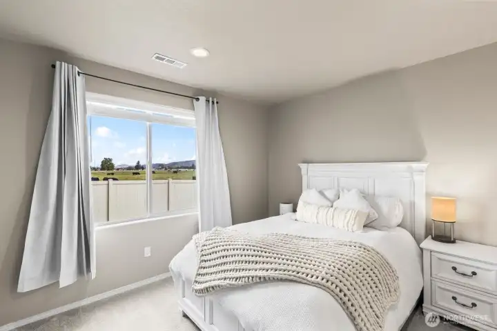 Views to impress! Built in 2023, this 1,574 sq. ft. single-level home offers the perfect combination of space, comfort, and modern living plus is beautifully appointed with the extras that do not come in a 'new' home! Window blinds, gas log fpl, 3 car gar, extended patio and did I mention VIEWS! The open-concept kitchen is a chef's dream, featuring abundant counter space, ample cabinetry, and a convenient breakfast bar for casual dining or entertaining. The expansive living room flows seamlessly into the adjoining dining area, creating a welcoming space for gatherings and everyday living. The spacious and private primary suite features a raised dual-vanity, a separate tub/shower, and an enormous walk-in closet. Two additional well-sized bedrooms share a second full bathroom with raised vanity, completing the home's thoughtful and functional layout. This warm and inviting 3-bedroom, 2-bath home offers the perfect blend of comfort, convenience, and privacy. A rare bonus is the peaceful farm and pasture views directly behind the home, providing beautiful scenery and added tranquility. Enjoy quiet mornings and the feeling of country living while still being right in town.