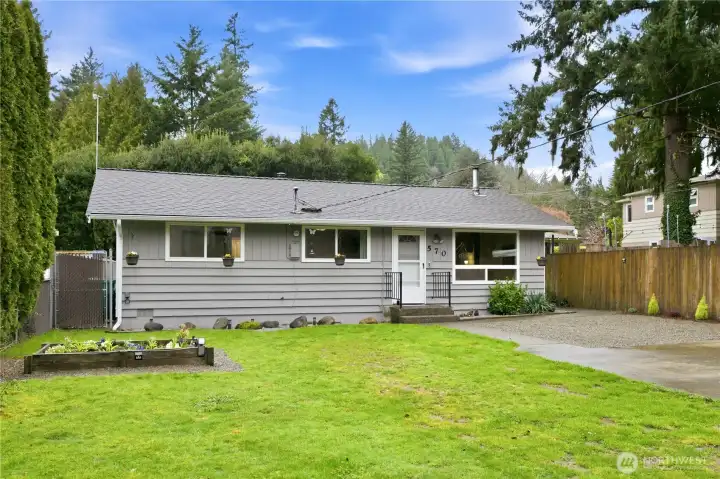 In the heart of historic Olde Town Issaquah, this beautifully maintained single-level home offers a blend of comfort, flexibility & unbeatable location. The main home is 1,430 sq ft with 3 bed/1.75 bath, plus a 336 sq ft heated, detached structure, ideal for home office, gym, multi-generational living or potential ADU. The covered breezeway connects the two structures. It even has a separate driveway, which offers additional space for parking, RVs, boats & more. Open concept floor plan is great for entertaining in huge kitchen & dining room, with abundant counter & cabinet space. Natural light pours in large windows & skylight, while original hardwood floors add timeless warmth & character. Gather around the cozy wood stove on cooler nights. Two bathrooms offer convenience, including recently remodeled spa-inspired bath with modern finishes. Additional highlights include fresh exterior paint, updated trim & newer energy-efficient windows. Enjoy morning coffee on newer deck while taking in mountain views & hummingbirds. The fully fenced & gated lot is private & highly usable, complete with berry bushes, garden beds & storage shed. This 6,534 sq ft, level lot offers room for future potential expansion. Home is located within top ranked school district, with easy access to transit, including a direct bus to Bellevue & Seattle a few blocks away. Experience the best of Issaquah living, in a sought-after neighborhood, moments from shops, restaurants, trails & community amenities
