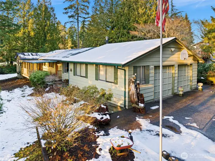 Your quintessential Gig Harbor rambler awaits! Nestled on a lovely corner lot along a quiet dead-end street, this charming home offers the kind of peaceful neighborhood living people love about Gig Harbor. Take an easy stroll to downtown, the waterfront, or nearby Harbor Hill shopping. Step inside to find a bright, refreshed interior with all new lighting, fresh paint, new carpet, and durable vinyl flooring that give the home a clean, modern feel while keeping its welcoming charm. The spacious primary suite offers a relaxing retreat with a walk-in closet, cozy sitting area, and an updated ensuite bath featuring radiant heated tile floors, a walk-in shower, & wide doorways. Enjoy cozy evenings by the wood-burning fireplace or unwind year-round in the sunroom with your own indoor hot tub—perfect for chilly Pacific Northwest days. The kitchen shines with a new sink, stainless appliances, updated faucets, and new doors throughout & RV parking. With 3 bedrooms, 1.75 baths, 1,764 sq ft, and no HOA, this home offers comfort, convenience, and classic Gig Harbor living.