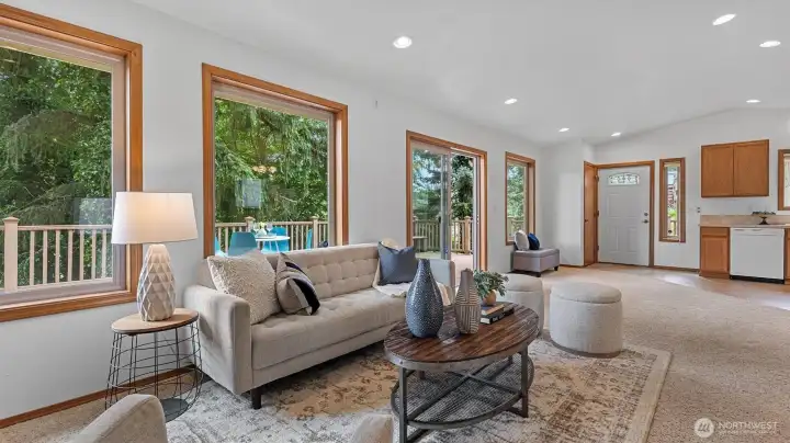 Discover a rare opportunity on the highly coveted Lake St. Clair in Olympia! This charming 3-bedroom, 1.5-bath home on nearly an acre boasts approximately 150 feet of lake frontage and sweeping water views that invite peace and relaxation. Inside, the open-concept living space is bathed in natural light, offering seamless flow to the expansive deck—ideal for quiet mornings with coffee or lively summer gatherings. Stay cool all season long with a heat pump and A/C. The large driveway provides plenty of space to park your RV or boat. Whether you're searching for a serene forever home or a weekend escape, this lakefront gem offers the perfect blend of comfort, privacy, and beauty. Home has been de-staged.