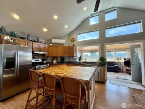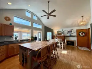 Golf Course Living with Outdoor Entertaining & Sunset Views! Beautifully maintained and thoughtfully updated home located along the 10th hole of the golf course. The fully fenced and landscaped yard is designed for both relaxation and entertaining, featuring a 10x20 storage shed, RV hookups, a covered outdoor gathering area, and a permitted cook shed with power. The cook shed includes a Blackstone grill, pizza oven, Weber BBQ, refrigerator, and built-in cabinetry—perfect for hosting and enjoying outdoor living. Recent updates include fresh interior and exterior paint and an updated kitchen with an expansive island, newer appliances, and a propane range. Reverse osmosis water is available to both the kitchen sink and refrigerator. The dining room features a cozy propane fireplace, and an additional finished living room space of approximately 160 sq ft offers a wall of windows that capture beautiful golf course views and stunning sunsets. The insulated garage includes custom cabinets and shelving, epoxy flooring, and excellent storage. Additional improvements include newer washer and dryer, a new hot water tank, whole-house water filtration and softener systems, and numerous thoughtful upgrades throughout. Conveniently located a short distance to the golf clubhouse and driving range, with easy access to the beach, canals, Duck Lake, parks, and downtown Ocean Shores amenities including shopping, dining, and entertainment.