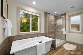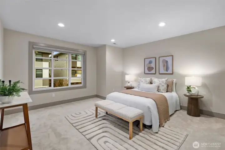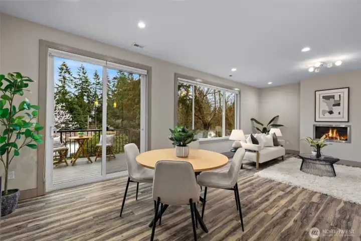 Life unfolds beautifully in this contemporary 5-bedroom Juanita home where light, modern design, and calming treetop views seamlessly come together. Sunlight pours through the open-concept main level where the kitchen, dining, and living space with cozy fireplace connect effortlessly. The chef’s kitchen complete with oversized island, quartz countertops, and KitchenAid appliances, becomes the hub for hosting friends or casual breakfasts. Sliding glass doors extend to an elevated deck framed by tranquil views, an inviting place to sip morning coffee or unwind under open skies. Upstairs, the vaulted primary suite offers a calming escape with spa-inspired bath featuring dual vanities, soaking tub and generous walk-in closet. A spacious lower level adds incredible flexibility with direct access to the private patio and fully fenced backyard. With fresh interior paint, brand-new carpeting throughout, and easy access to Kirkland amenities, walking trails & coveted Lake Washington Schools, this move-in ready retreat blends comfort, style, and everyday livability.