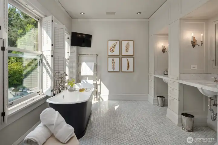Before Medina became famous for 'who' lives on the Gold Coast, visionary entrepreneur Edward Webster and his notable architects set the standard for 'how' when they built The Gables. This legacy estate is an escape for all seasons and a timeless asset. Created for modern life with a conscious investment in quality and set discreetly down a lane and behind magnificent hedges, this uber private estate with Hamptons vibes commands .75 acres along fabled Overlake Drive. Modernized and effectively rebuilt by Toth Construction, "Medina's first great home" showcases magazine-worthy interiors by Rocky Rochon. Luxurious details, custom furnishings and classic materials set the scene for large affairs and intimate living. Grandeur unfolds in stages, from the motor court to the deep entertaining and dining porches, magical pathways wind past the elliptical pond, espaliered apple trees, and brilliant hydrangeas, through the gates to lush gardens bursting with lavender and white roses scenting the enchanting pool and entertaining areas. At dusk, the welcoming garden comes alive with fairy lights and beckons all to gather around the stunning outdoor fireplace or meander around to the expansive play lawn. Beautifully featured in print and onscreen The Gables brings the architectural style, character and quality building details found in Seattle's best homes to the Eastside's most coveted address--a rare investment, built to last.