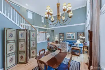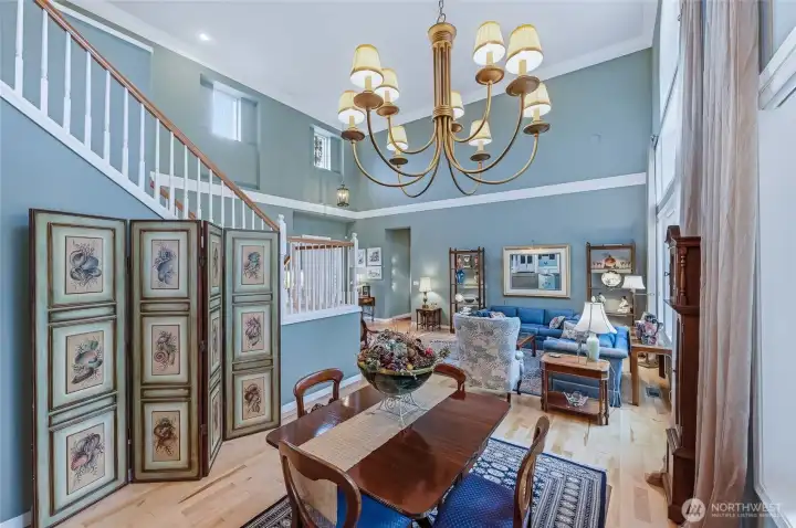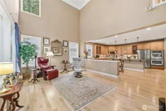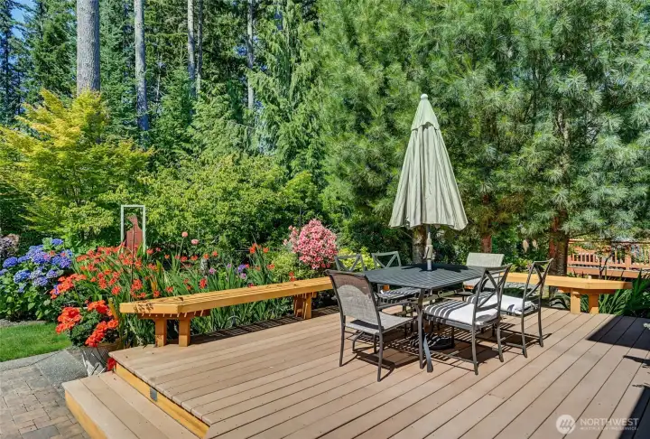 About 3,150 sq.ft., this Maryhill home has a fantastic mix of formal and informal spaces on a level arboretum-like lot backing to a greenbelt. Be greeted by vaulted ceilings, cathedral-like windows, and warm hardwood floors that run through the main floor. The 21-ft. ceilings and walls of windows continue into the family room, bringing inside the lush garden and evergreens beyond. The kitchen has an abundance of cabinets with pull-out shelves, a pantry wall, lots of prep space and an eating space. The huge main-floor primary bedroom has an equally big bathroom that includes two vanities, a steam shower, soaking tub and walk-around closet. The oversized second primary bedroom on the main floor is also en-suite with a walk-in closet. This room is plumbed and could be converted to a studio apt. The large office and laundry room complete the main floor. The upstairs third bedroom has a walk-in closet and adjacent full bath. A loft area on this floor has a built-in workspace. The large deck with built-in benches, only steps above a brick patio, is surrounded by exquisite gardens filled with beautiful perennials and specimen plantings, extensive outdoor lighting and a backyard drip irrigation system. It is a short, mostly level stroll to the Cascade Clubhouse, Trilogy’s social hub. Recently re-roofed. New furnace and air conditioner. Exterior painted 2024. Level 2 EV charger.