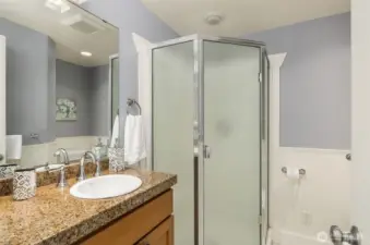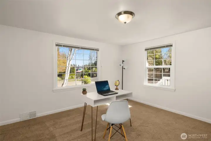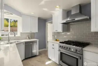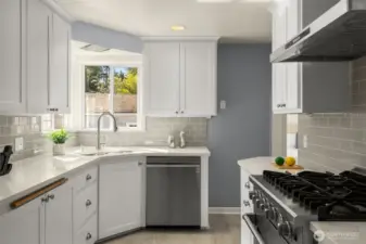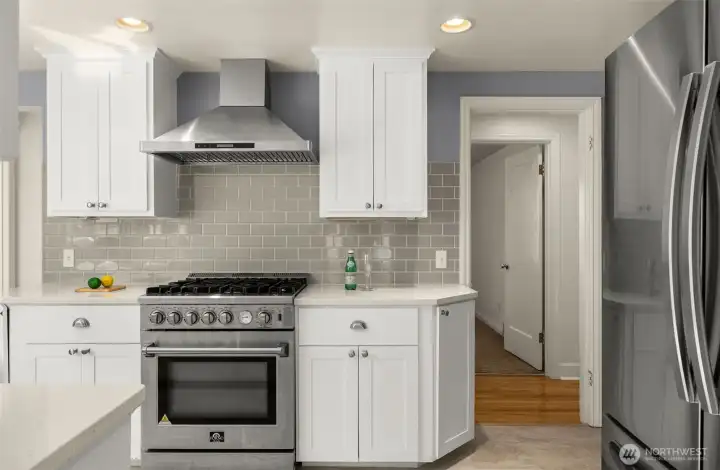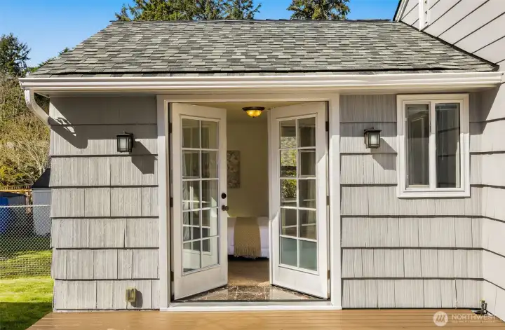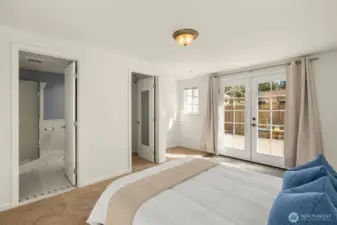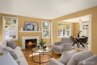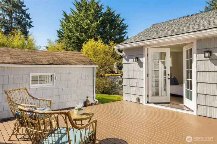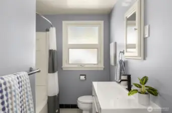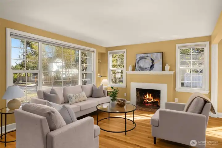 Charming and beautifully updated, this Broadview home offers the ideal blend of character, functionality, and flexibility—all in a highly convenient location. Inside, rich oak flooring spans the main level, while a classic fireplace anchors the living space with warmth and style. The dining room opens through French doors to a spacious, private deck—perfect for indoor-outdoor living. The updated kitchen shines with quartz countertops, modern cabinetry, and premium SS appliances. Natural light fills the open layout, with 3 bedrooms conveniently located on the main level, including a primary suite with ensuite bath, walk-in closet, and direct deck access. Step outside to a fully fenced yard with a peaceful, park-like setting. The large, partially finished basement offers incredible flexibility for a media room, home office, gym, or future expansion. Recent updates include a new HVAC system, roof, and electrical, providing comfort and peace of mind for years to come. Additional highlights include a detached garage and ample off-street parking, along with exciting potential to remove the garage and add a detached ADU in the rear yard for additional living space or rental income. Located near parks, shopping, schools, Light Rail, and the Interurban Trail for easy commuting and recreation.