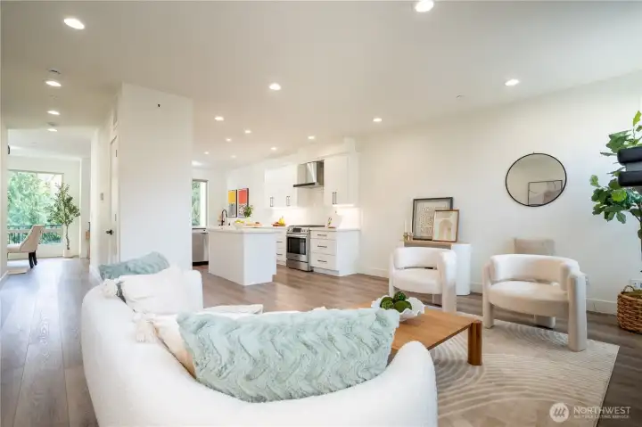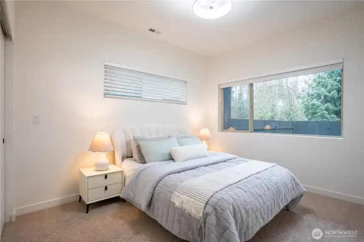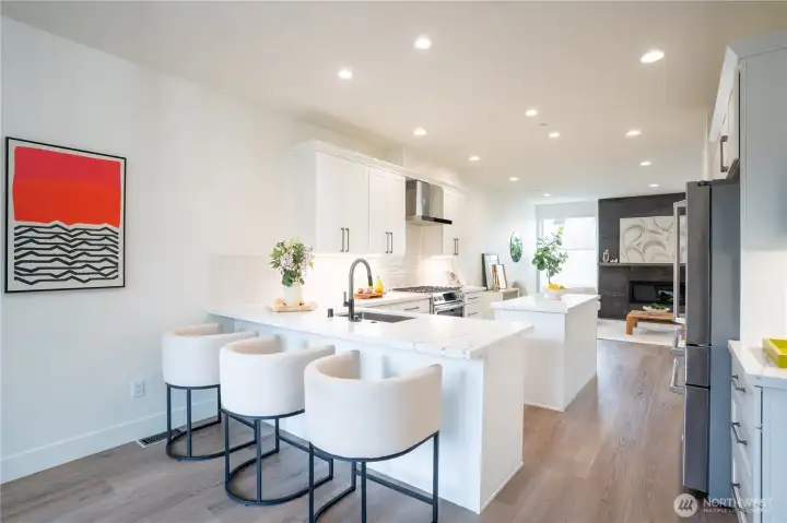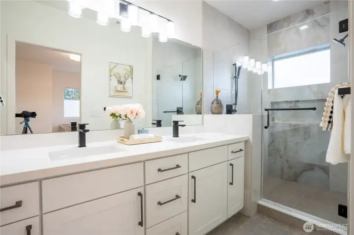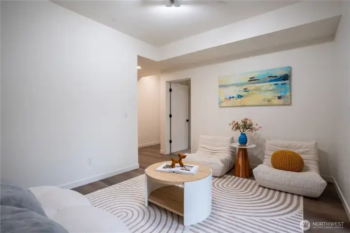 Stylish and spacious home in the desirable Arbor Mist Village community, offering modern finishes and greenbelt privacy with convenient access to Whole Foods, light rail, and Alderwood Mall. This well-designed home features 4 bedrooms plus a bonus/rec room, 3.5 baths, and a 2-car garage. The bright island kitchen includes white shaker cabinets, quartz countertops, stainless steel appliances, and an open layout ideal for everyday living and entertaining. Primary suite offers a designer tiled walk-in double shower with glass doors and a spacious walk-in closet. Enjoy covered decks, a fully-fenced backyard backing to a peaceful greenbelt, and a welcoming front porch. Additional features include 9-foot ceilings, 7-foot doors, a heat pump with A/C, on-demand gas water heater, LVP flooring, fully tiled bathrooms, and window coverings. Convenient commuter location with nearby light rail and easy access to I-5 and I-405. Whole Foods is just across the street, with Alderwood Mall, dining, and everyday conveniences minutes away, while the home remains tucked inside a quiet residential community.