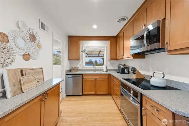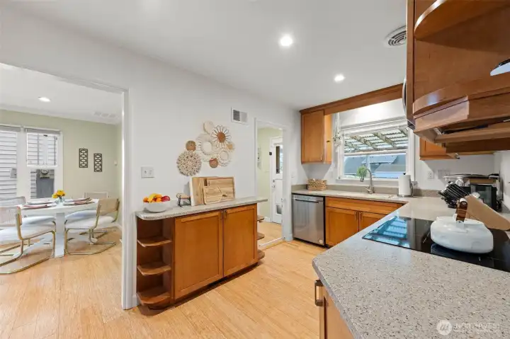This home is amazing! Beautifully remodeled not too long ago. Newer water heater, attic insulation, ductwork, updated kitchen cabinets, counters and appliances, double pane windows bamboo floors, electrical panel, and the list goes on and on. The bamboo floors are beautiful, the bedrooms are spacious and the crown molding is a touch of elegance. The backyard has a large covered patio, perfect for entertaining. The garage is off the alley and provides additional storage. Excellent location on a quiet street in desirable University Place close to shopping and amenities. This home will NOT last long!!!