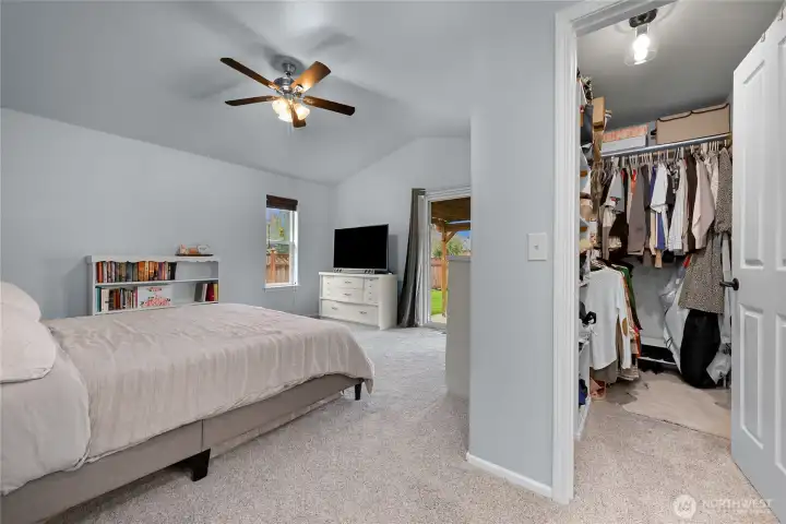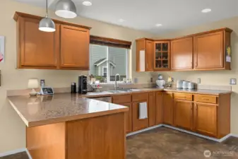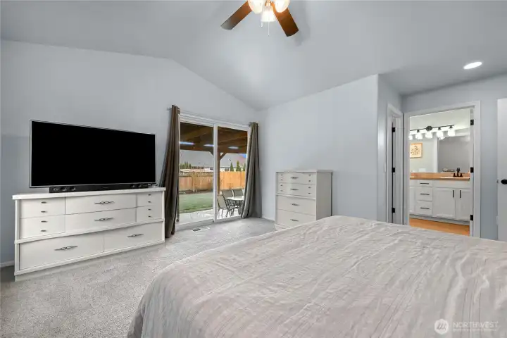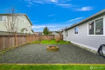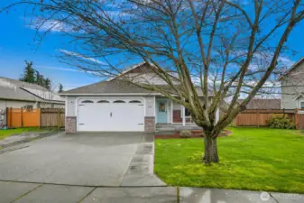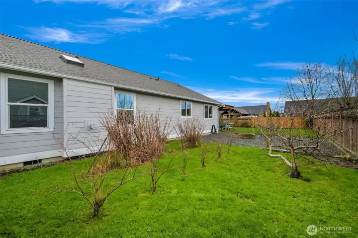 Ideal single-level living awaits in this beautifully maintained 3-bedroom, 2-bath home tucked on a quiet cul-de-sac. Vaulted ceilings and abundant windows create light and bright living spaces, while the large main living area is anchored by a cozy gas fireplace—perfect for relaxing or gathering. The kitchen offers generous storage and flows easily into the dining and living areas for comfortable everyday living. All three bedrooms are spacious and thoughtfully arranged, providing flexibility for a variety of needs. Step outside to enjoy the covered patio overlooking the fully fenced backyard, designed for both relaxation and outdoor gatherings. The yard is well landscaped and filled with established plantings, including a flowering cherry blossom, raspberries, blueberries, and an apple tree. A fire pit area adds another inviting space to unwind under the open sky. Additional highlights include a two-car garage with built-in storage and an off-street parking area for added convenience. With its inviting layout, natural light, and peaceful setting, this home offers a wonderful blend of comfort, space, and outdoor enjoyment.