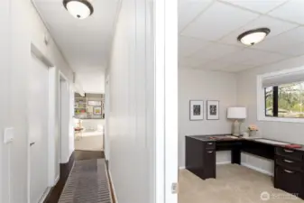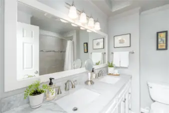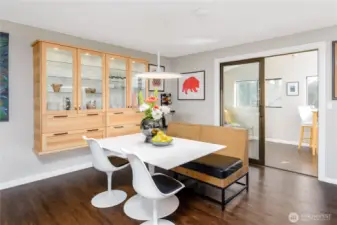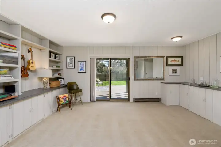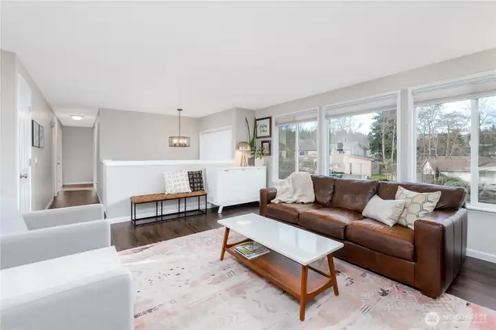 Situated at the foothills of Olympic National Park, this beautiful home offers peek-a-boo views of the Strait and snow capped mountains, creating the perfect backdrop for Pacific Northwest living. The split-level design features 3 bedrooms upstairs and 2 bedrooms downstairs, ideal for multi-generational living, hosting guests, or creating an excellent work-from-home set up. The upper level showcases an open living room w/ wood burning fireplace, dining area, and kitchen, plus an enclosed seasonal porch—perfect for morning coffee or relaxing while taking in the wildlife. Step out to the Trex deck and enjoy summer BBQs overlooking the large fenced backyard. The kitchen is well appointed with quartz countertops, stainless steel appliances, roll-out drawers, and counter seating. The primary suite features a large closet and a ¾ bath with tile shower while the hall bath includes a gorgeous vanity w/ dual sinks and tub/shower. Downstairs, a spacious bonus room with wood-burning stove, built-in cabinets, and wet bar offers a great space for movie nights, game days, or gathering with friends. Recent upgrades include a heat pump for heating and cooling, bathroom vanities, lighting, faucets, and fixtures. The attached 2-car garage offers plenty of storage, and outside you'll enjoy low-maintenance landscaping and a modern style storage shed—great for outdoor gear and hobbies. Easy access to hiking, nature, and the beauty of the Olympic Peninsula! Come see this gem today!