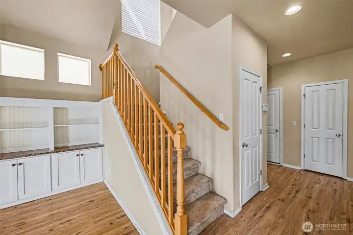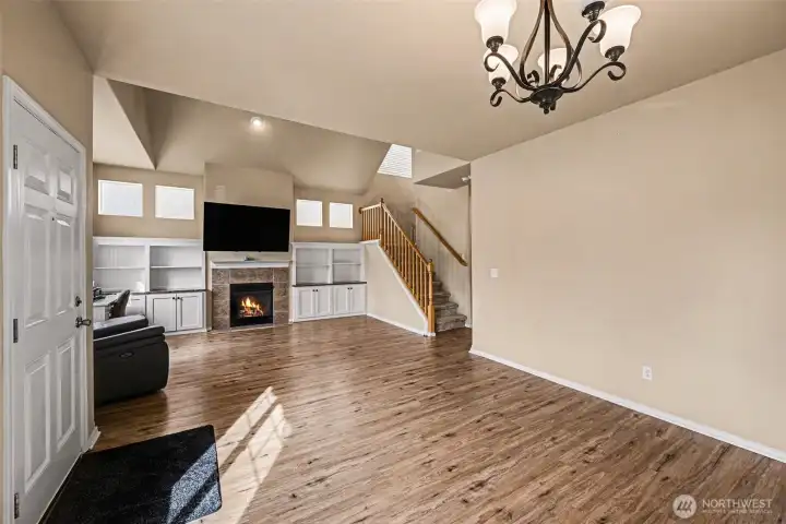 Situated in the desirable gated community of Verona South in Lakeland Hills, this home features vaulted ceilings in the living room with wall-to-wall carpet, an open rail staircase, and dining space. The cozy gas fireplace is framed by built-in cabinets and includes a big screen TV mount. The kitchen, complete with all appliances, offers a large island and hardwood floors. three spacious bedrooms, and a walk-in closet in the primary suite. The two-car garage, accessible via the alley, provides ample storage. New Roof installed 3/2026 Conveniently located near shopping and dining.