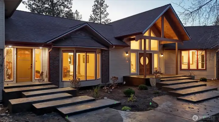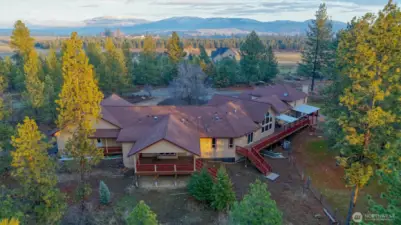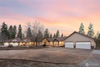 Spacious gated country estate on ~10 acres, 10 min. South of Spokane Valley. This custom 6,310 sq ft rancher w/ 7-car Garage blends modern luxury amenities with exceptional space and versatility—offering privacy, functionality, and endless possibilities! More than 2/3 of the home was newly built in 2025 with energy-efficient design, accessibility in mind, and high-end finishes, including wraparound decks, courtyard, and sport court. The layout includes 6 bedrooms (w/ 2 primary en-suites) and 5.5 baths—ideal for multigenerational or flexible living, guests, dedicated work from home or school. Features include solid hardwood floors, granite surfaces, natural gas heat, appliances and fireplace, blazing fast Starlink internet, and Cat5e wiring. A 2-bed guest home provides additional private living quarters. The grounds offer a huge 60’x120’ shop w/ 200-amp service, concrete floor, RV parking (2), one with full hookups. Other amenities include: 200 GPM well, horse setup, orchard, garden, root cellar, & chicken run.