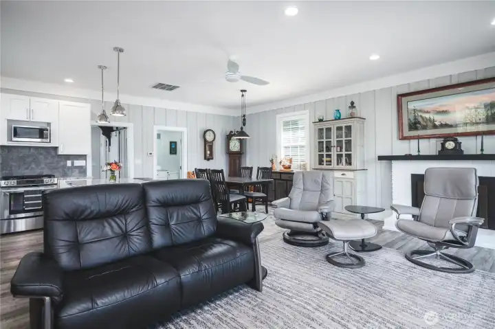 Welcome to this sweet upscale beach retreat! This lovely two-bedroom, two bath low bank waterfront home offers breathtaking southwest views across Padilla Bay and the most fabulous sunsets. Remodeled in 2020, this property would be a fabulous summer or full-time residence or a money-making short-term rental. Relax by the cozy fireplace in the open concept living area, perfectly designed for entertaining and gathering with friends and family. Large windows capture beautiful natural light and showcase the ever-changing views of the bay and wildlife. Located in what the locals consider one of the islands best crabbing and oyster bays, this property offers far more than just beautiful scenery - it offers a true coastal lifestyle. Step outside to the expansive 21' X 40'+ deck with custom awning, the perfect place to enjoy sunsets, sea breezes and outdoor dining. The spacious yard provides plenty of room to relax, garden or play while a Tuff Shed offers additional storage and a gated graveled area provides extra off-street parking for guests or recreational vehicles. Easy beach access, this home is an idyllic coastal escape. A prelisting inspection is available, the crawl space has recently been entirely cleaned and refurbished, and a brand-new septic system will be installed in April adding value and peace of mind for the next owner.