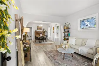 Charming and lovingly maintained 1915 Craftsman in the historic Riverside neighborhood! A welcoming covered front porch sets the tone for this classic home, blending timeless character with thoughtful updates. The main level features a bright bedroom, full bath, spacious dining area, and an inviting living room filled with natural light. The kitchen offers new countertops and sink, a cozy breakfast nook, and a charming greenhouse window. French doors open to a generous back deck—perfect for relaxing or entertaining—while the freshly painted front porch enhances the home’s curb appeal. The finished lower level adds incredible flexibility with a theater/rec room, newly added office or den space, ¾ bath, and laundry area. A cozy wood-burning stove can circulate heat throughout much of the home, creating a warm and inviting atmosphere. A spacious workshop and storage area provides plenty of room for projects, hobbies, or gear. Enjoy the fully fenced backyard featuring a cozy firepit—perfect for gathering with friends. Recent updates include a new water heater, EV charger, new flooring throughout the lower level, and an updated basement bathroom. Move-in ready and conveniently located with easy access to I-5 while enjoying the charm and community feel of the Riverside neighborhood.