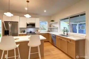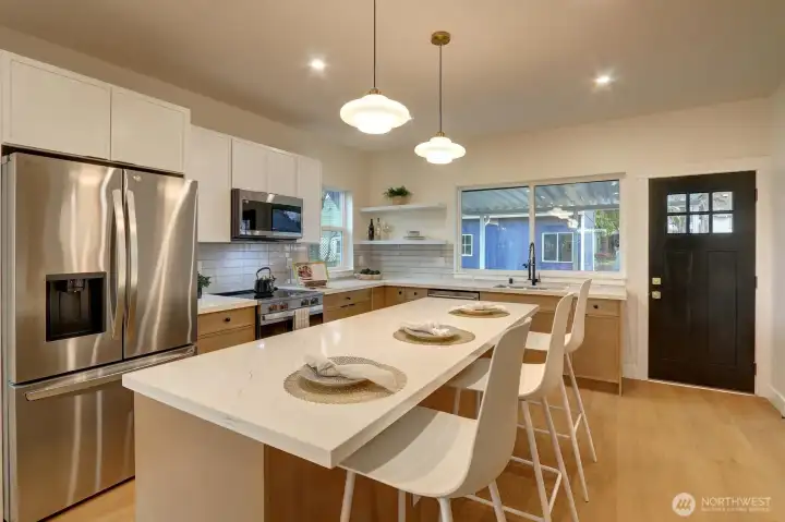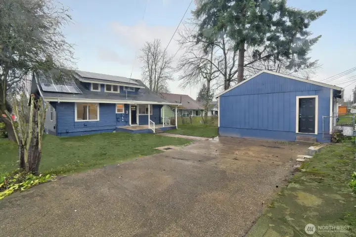 Beautifully updated 4-bedroom Craftsman-style home blending classic character with modern updates. Main floor bedroom with ¾ bath; three additional bedrooms upstairs, including one with a private bath. The main level features a living room with fireplace and a spacious kitchen with island seating that opens to the dining area. Recent updates include new flooring, custom cabinetry, and refreshed bathrooms with walk-in showers. Large windows provide abundant natural light. Solar panels help reduce energy costs. Detached garage offers potential for future DADU or additional living space.