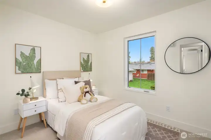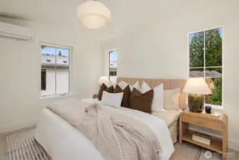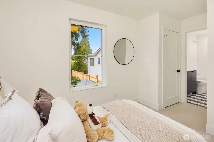 Exceptional new construction cottage by Gerry Homes in East of Market, offering refined design, elevated finishes and a spacious fenced backyard. A charming porch welcomes you to the gracious main level featuring bright & airy two-story living room, with open concept dining and kitchen with gas range. Unique main floor bedroom and ¾ bath offers flexible floor plan. Upstairs showcases two bedrooms, each with en suite baths for ultimate privacy and convenience. Moments to downtown the shopping and dining of downtown Kirkland, recreation on Lake Washington, & effortless commute throughout the east side. Designated EV off-street parking provides peace of mind at the end of the day.