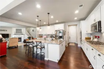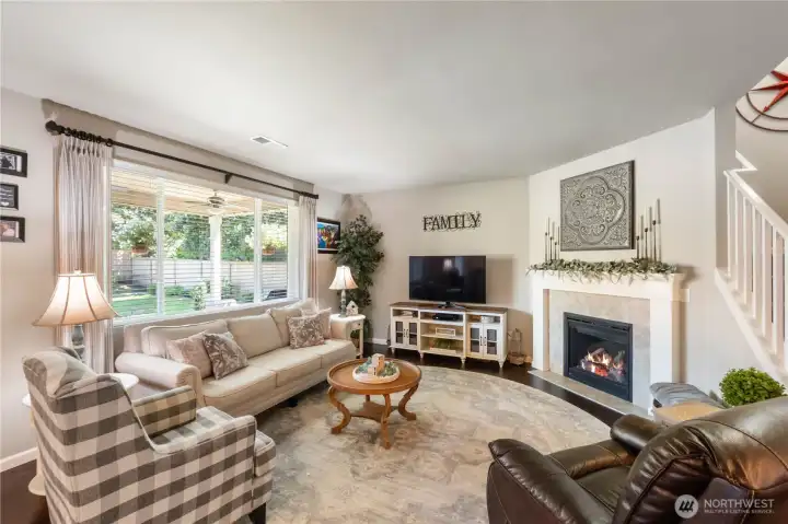 Welcome home to the highly sought-after gated community of Grand Firs—where comfort, style, and connection come together. This former model home instantly draws you in with soaring ceilings and elegant 8-foot doors, creating a sense of space the moment you step inside. Just off the entry, a private office with French doors offers the perfect place to focus or unwind. The main floor is designed for living and gathering. Beautiful luxury vinyl plank flooring flows throughout, leading you to a warm, inviting living room with a cozy gas fireplace. The heart of the home is the stunning kitchen—featuring a massive island, granite countertops, stainless steel appliances, double ovens, a gas cooktop, and custom cabinetry. Whether you’re hosting friends or enjoying a quiet night in, the open-concept layout keeps everyone connected. Upstairs, you’ll find a spacious bonus living area, three generously sized bedrooms, and a peaceful primary suite complete with a luxurious 5-piece bath—your own private retreat at the end of the day. Step outside and feel the pride of ownership in every detail. Professionally landscaped grounds, garden space, full sprinkler system, concrete walkways, and a covered patio create a backyard built for relaxing and entertaining. And with built-in holiday lighting, every season feels a little more magical. This isn’t just a home—it’s where your next chapter begins. Don't DREAM it, OWN it!