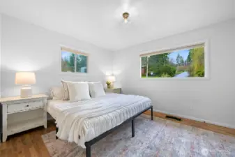 This midcentury gem sits on a spacious, flat corner lot in the heart of Bellingham, combining convenience and charm with easy access to Whatcom Falls Park, downtown, local amenities, and dining. The bright, updated kitchen opens to an expansive deck—ideal for al fresco meals, summer BBQs, or soaking up the sun. A fully fenced yard, patio, and fire pit offer excellent entertaining space, plus ample room for gardening or play.The lower-level suite has a private entrance and includes a kitchentte, two bedrooms, a bonus room, and an additional washer/dryer—well-suited for ADU conversion, long-term rental, short-term income, or multigenerational living (layout supports separate utilities and private access). Recent updates provide peace of mind: a brand-new roof, hot water heater and a newer furnace with heat pump/AC for year-round comfort. The main level features beautiful wood floors, and the property includes a one-car garage and plentiful street parking. A rare opportunity to live, entertain, and invest in one of Bellingham’s most desirable locations.