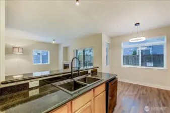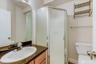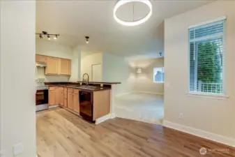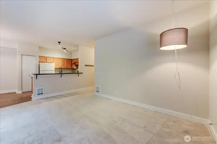 Updated home with a stylish kitchen featuring granite counters, a copper sink, tile floors, and a large breakfast bar. Big windows brighten the spacious living room with its cozy electric fireplace. Two generous bedrooms include a primary suite with double sinks, plus a guest ¾ bath. New carpet throughout. Enjoy a private covered deck and two parking spaces. Adjacent to Everett Golf & Country Club and minutes from downtown, Boeing, and Paine Field.