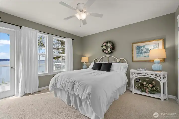 Elevated Island Living. Discover a remarkable waterfront retreat on Camano Island where breathtaking views and relaxed coastal living come together. Sweeping Sound and mountain panoramas are visible from nearly every room, creating an unforgettable backdrop for daily life, with gorgeous sunsets, passing boats, whale watching, and eagles soaring overhead. Designed to showcase its stunning setting, the home features walls of windows that frame the ever-changing scenery. At the heart of the home, a beautiful fireplace serves as a central focal point, creating a warm and inviting place to gather. The spacious kitchen features a large, functional walk-in pantry with additional workspace. A convenient main-floor primary bedroom adds comfort and flexibility, while additional bedrooms each have their own en-suite for residents and guests. The expansive 1,224 sq ft garage provides abundant room for vehicles, toys, storage, and projects. Above the garage, a versatile finished space offers endless possibilities—perfect for a home gym, art or music studio, hobby space, or a private retreat for work and creativity. Outside, the patio and private grounds create an inviting setting for barbecuing, gardening, playing, relaxing or simply taking in the peaceful surroundings. A firepit adds a place to unwind and enjoy evenings under the stars. With no ferry required, this exceptional Camano property offers the ease of island living and the feeling of being on vacation every day.