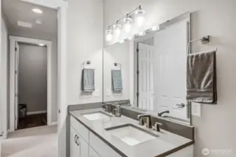 Welcome to this stunning 5 bed, 3 bath home nestled on a cul-de-sac in the desirable North Creek neighborhood of Gig Harbor. Entry with 10 ft ceilings & natural light leads you to an open concept kitchen/dining/living area with gas fireplace. Chef's kitchen w/large kitchen island, quartz countertops, stainless steel appliances, 5 burner gas range, under cabinet lighting, soft close cabinets, & custom light fixtures. On the main floor you will also find a bedroom w/walk-in closet and 3/4 bath w/tiled shower. Oversized primary bedroom upstairs w/large en-suite, double vanity, soaker tub, walk-in shower with custom tile work & walk-in closet. Upstairs has 3 additional oversized bedrooms, full guest bath, loft, and laundry room. Tons of upgrades throughout. Finished 2 car garage with plenty of storage space. Fully fenced backyard w/sprinkler system for front & back. A/C for hot summer days. Close to waterfront, parks, restaurants, YMCA, Costco, I5 & Cushman Trail.