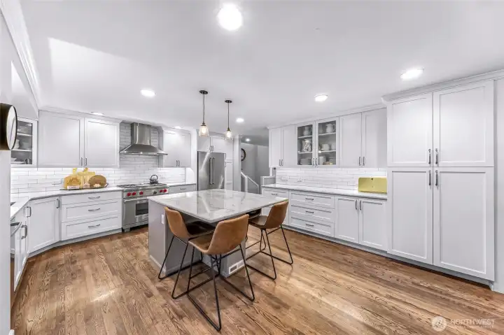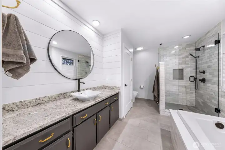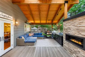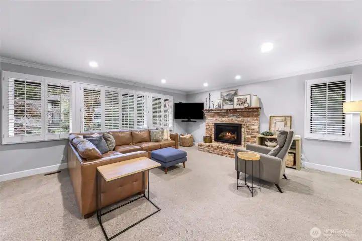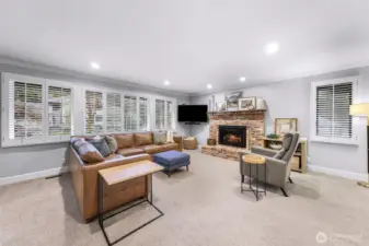 Exuding charm and sophistication, this beautifully updated home is nestled in the heart of Heritage Hills, offering space and style on a sun-filled corner lot and features seamless indoor-outdoor living. The spacious living room is anchored by a gas fireplace which flows seamlessly into the recently updated gourmet kitchen. This space is a culinary dream, featuring a top-tier Wolf range and high end appliances, all anchored by a large island and expansive dining area. French doors directly off the kitchen lead to the outdoor living area. The heart of this space is a covered deck, boasting a gas fireplace, built-in BBQ, heater, and dining area. Upstairs, the primary suite showcases shiplap accents, along with an updated spa-inspired ensuite bath. An additional bedroom and full bath complete the upper level. Downstairs, you'll find two more bedrooms, a designer-updated bath, and a generous bonus room with a second gas fireplace and custom built-ins and provide ideal space for everyday living or entertaining, with direct access to the backyard. The expansive yard offers a dedicated patio, a relaxing hot tub, a sport court, and a generous lawn, providing space for both active recreation and quiet enjoyment. Enjoy the Heritage Hills outdoor neighborhood pool, parks and top rated LWSD schools.