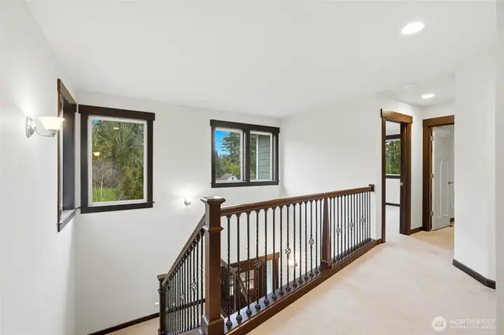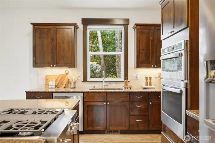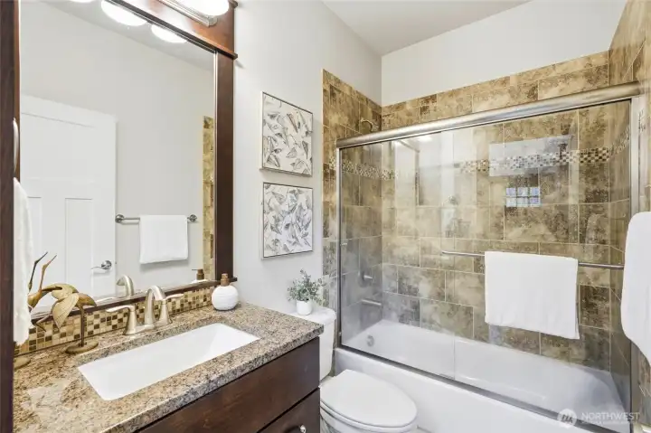 Welcome home to this stunning Craftsman-style two-story with basement offering 4 bedrooms, 4 baths, and 2,570 square feet of beautifully designed living space. This thoughtfully built home blends classic charm with modern comfort and functionality. The main level features engineered hardwood flooring, a warm gas fireplace, and an open living space that flows seamlessly into the kitchen and dining area. The kitchen is built for both everyday living and entertaining with slab granite countertops, tile backsplash, stainless steel appliances, gas cooktop, under-mount sink, walk-in pantry, and quality wood cabinetry with soft-close doors. Step outside to the veranda deck just off the living room, perfect for relaxing while overlooking the surrounding property. A spacious dining room and versatile main floor flex room offer the ideal setup for a home office, den, or creative space. Upstairs, the inviting primary suite features a five-piece bath and a walk-in closet with custom shelving designed for maximum organization and comfort. The lower level adds flexibility with a private bedroom and full en-suite bath, perfect for guests, multi-generational living, or extended stays. Car enthusiasts and hobbyists will appreciate the rare dual-garage setup with a three-car garage on the lower level and an additional two-car garage off the main level, offering incredible storage and parking options. The roof has also recently been professionally cleaned & Serviced, adding peace of mind.