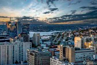 Priceless Views await, rare 18th floor NW corner jewel box, including 1 parking & 1 storage. Imagine coming home to these twilight views! Wrapped with Floor-to-ceiling windows, flooded with natural light. Unwind to magical sunsets & glimmering city lights.Timeless Features -soft close cabinets, bosch appliances, dimable lighting, gas cooktop, A/C, quartz counters. Graystone is First Hill's newest tower, "designed to evoke a bygone era of elegance". Unparalleled amenities -360- Rooftop terrace, enjoy grilling, lounging & cozy Firepits. Stunning Media room- Dining lounge- Wine lockers -Game room- Meeting areas, Co-working Lounge, Fitness Center, Pet Grooming Area.24/7 concierge. 5 star location, great access to the rapid ride, light rail, stadiums & hospitals. This is a perfect pied-à-terre, with the ability to do short term 3 month leases, great for traveling nurses. Perfect location for Medical professionals, near Swedish, Harbor view & Virgina Mason. Great investment if you have a son or daughter going to Seattle U or as in city suite to be near a loved one at Skyline assisted living. Perfect in city location for Seahawk &Mariner games. Luxury lock and leave lifestyle, with extraordinary amenities. World class Steel and Concrete building. No rent cap.