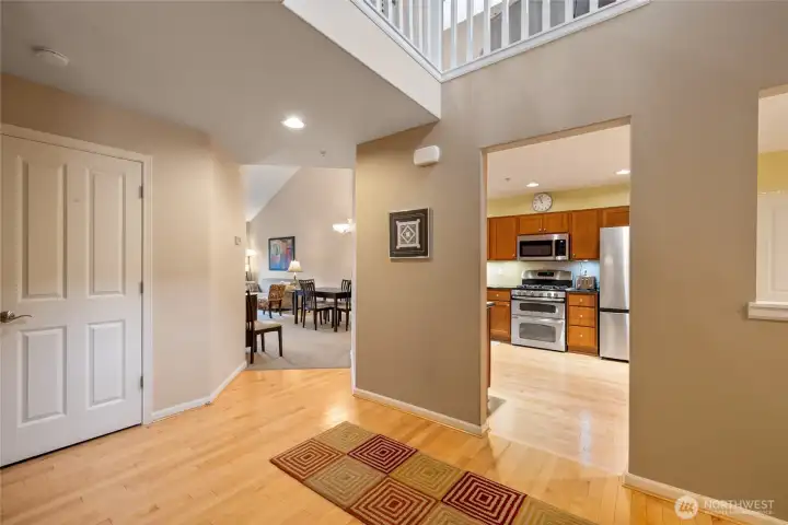 Welcome to the highly sought-after Madera community in Lakeland Hills. This beautifully maintained 2-bedroom, 2-bath home offers privacy, comfort, and abundant natural light with stunning southern-facing windows that allow sunshine to pour into the main living spaces.The open-concept main level features vaulted ceilings, light wood floors, and a cozy fireplace that anchors the living and dining areas. The kitchen is appointed with granite countertops, stainless steele appliances, warm wood cabinetry, and a sunny breakfast nook perfect for morning coffee. The spacious main-floor primary suite offers vaulted ceilings, a walk-in closet, dual sinks, and a walk-in shower, creating a peaceful retreat. Upstairs, you’ll find a generous second bedroom, full bath with double sinks, and a versatile loft area ideal for a home office, reading nook, or guest space. Step outside to a private patio backing to protected open space — perfect for quiet evenings and relaxing views. Enjoy carefree living in this gated community with HOA dues covering exterior building maintenance, lawn care, water, sewer, and security gate access. A two-car garage and walkability to Lakeland Hills shopping and dining complete the package. Light-filled, private, and beautifully cared for — this home offers easy living in an exceptional location.