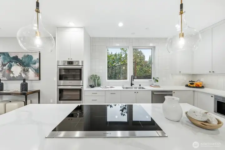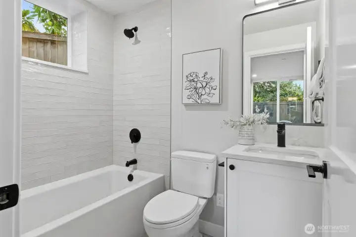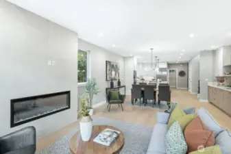 Experience contemporary Northwest style paired with timeless luxury in this stunning new construction home. The main level showcases a gourmet kitchen with a quartz island, custom cabinetry, premium appliances including a double oven, and a sleek wet bar. Enjoy a formal dining room, an inviting living room with a fireplace, and a dedicated office—ideal for working or studying from home. Upstairs features vaulted ceilings, four bedrooms, two full bathrooms, and a convenient laundry room with washer and dryer included. The spacious primary suite offers a spa-inspired bath with a soaking tub, oversized shower, heated floors, and a walk-in closet. The lower level provides additional flexibility with a second living room or media space, a full bath, and access to a patio and fully fenced backyard—perfect for relaxing or entertaining. A mudroom connects to the EV-ready two-car garage. For added comfort and peace of mind, the home is also equipped with a gas-powered generator for backup power during outages.